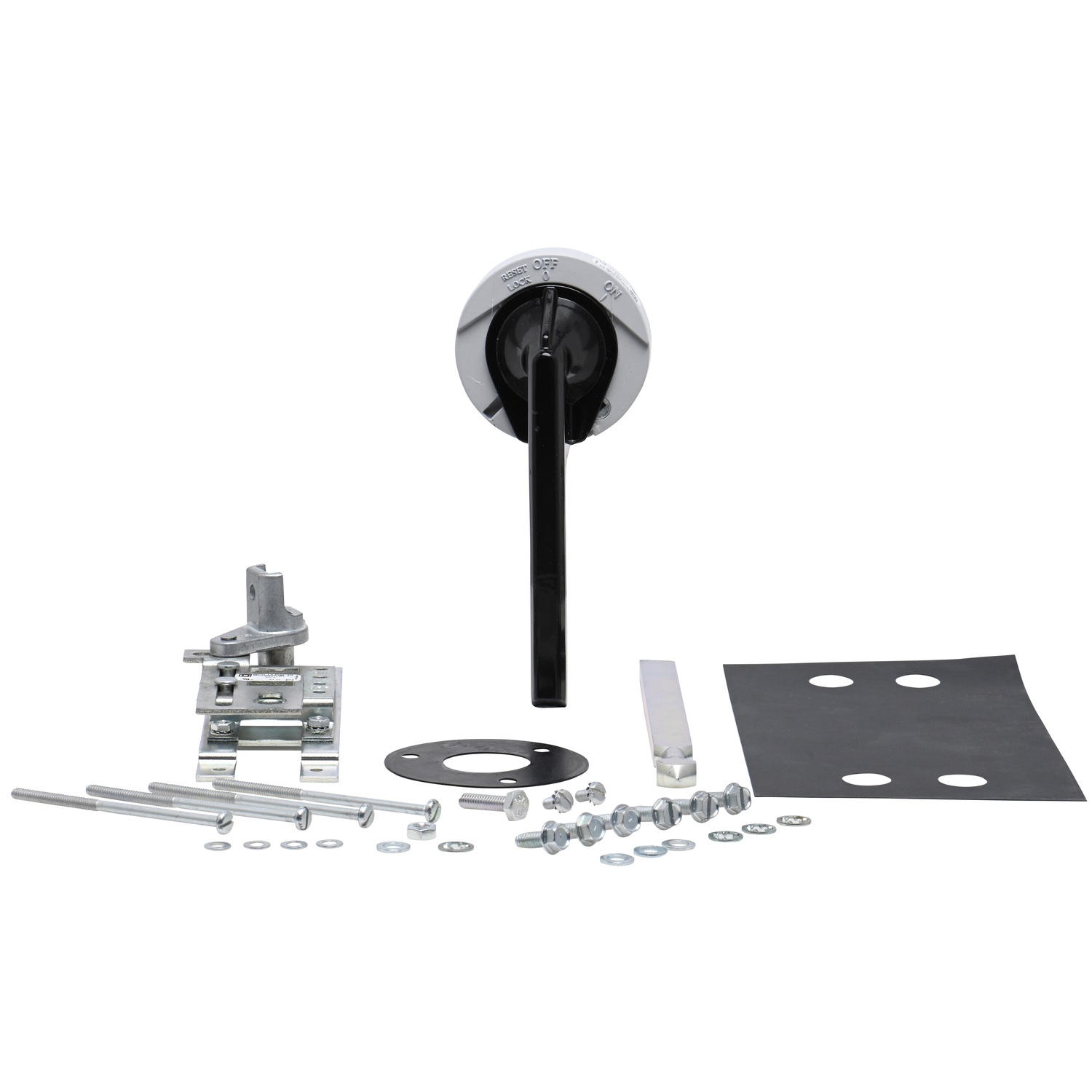 Type L door mounted, variable depth operating mechanisms feature heavy duty, all metal construction with trip indication. Operating mechanism can be padlocked in the Off position when the enclosure door is open. Handle assemblies can be locked Off with up to three padlocks, which also locks the door closed This operating mechanism kit will work with KAL, KCL and KHL circuit breakers. Circuit breakers can be 2 or 3 pole with a frame size of 250A. Proper circuit breaker must be ordered separately. Kit contains a 6 inch long handle that is rated NEMA 1/3R/12. The kit contains a standard shaft. The mounting depth of this kit is 6.25 to 11.19 inches from the circuit breaker mounting surface, control panel, to outside of enclosure door. Kit is UL component recognized and CSA certified.