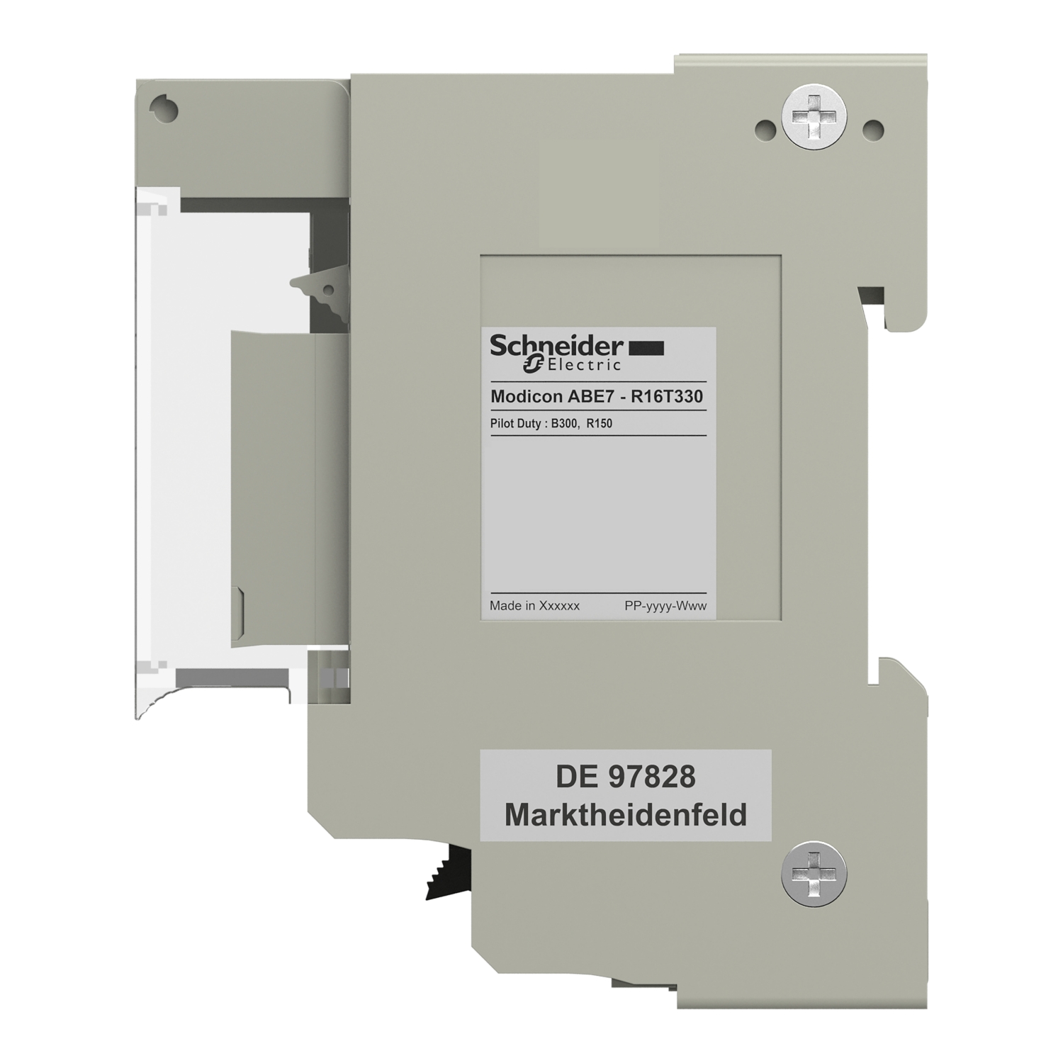 | Fixing mode | by screws (solid plate with fixing kit), by clips (35 mm symmetrical DIN rail) |