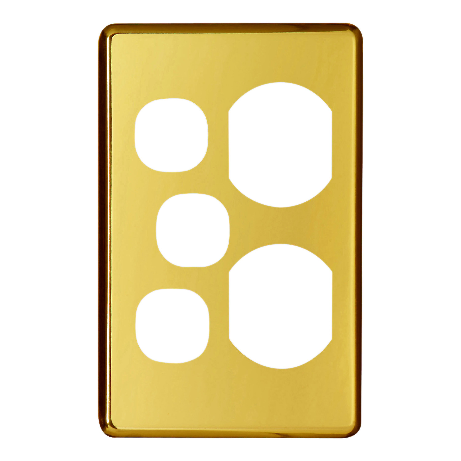 Socket outlet cover for vertical installations. Twin switched socket cover with extra switch aperture. Socket cover with original design. Clipsal C2000. Colour: Brushed Aluminium