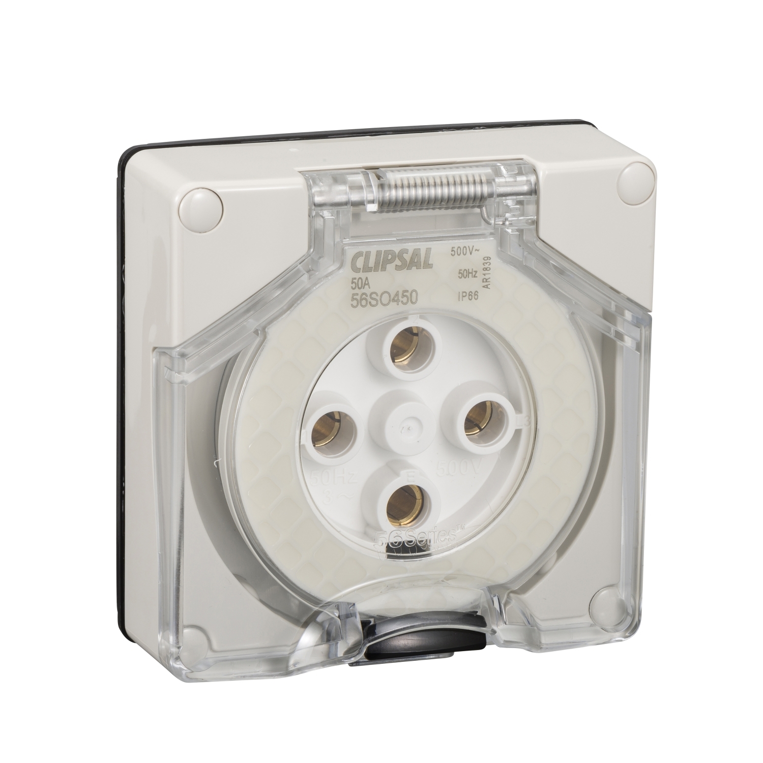Socket Outlet, Clipsal - 56 Series, Surface 4 PIN Round 50A Less Enclosure