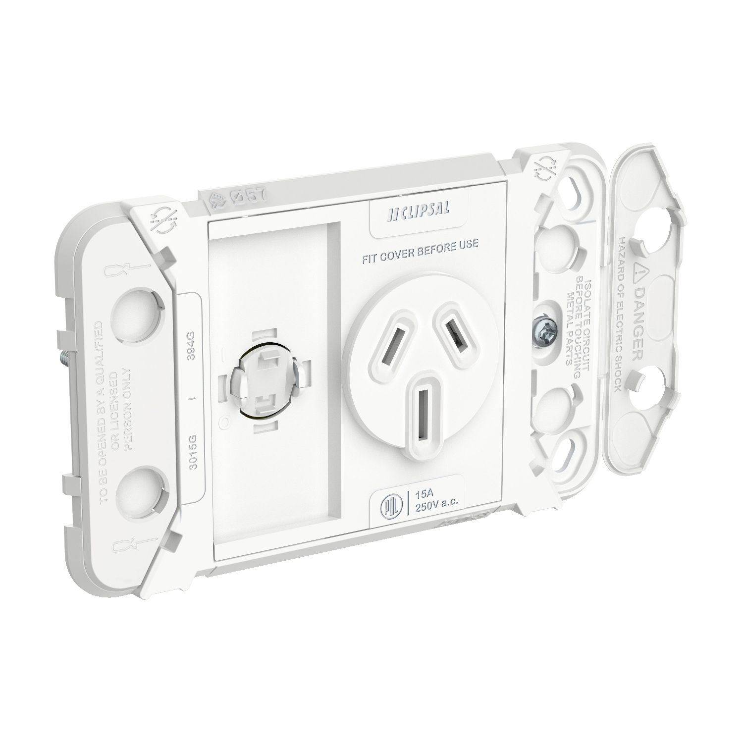 Single Switch Power Point Grid, Clipsal Iconic, Horizontal Mount, 250V, 15A