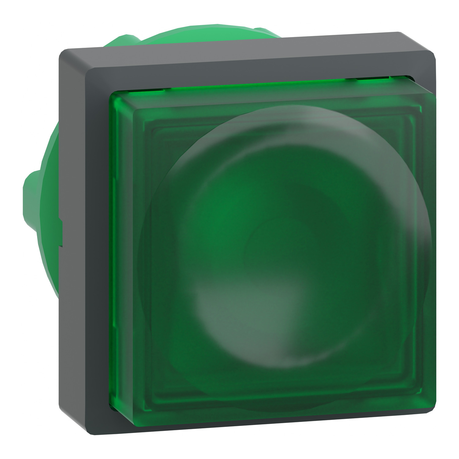 Head for illuminated push button, Harmony XB5, green square projecting, 22mm, universal LED, spring return, unmarked