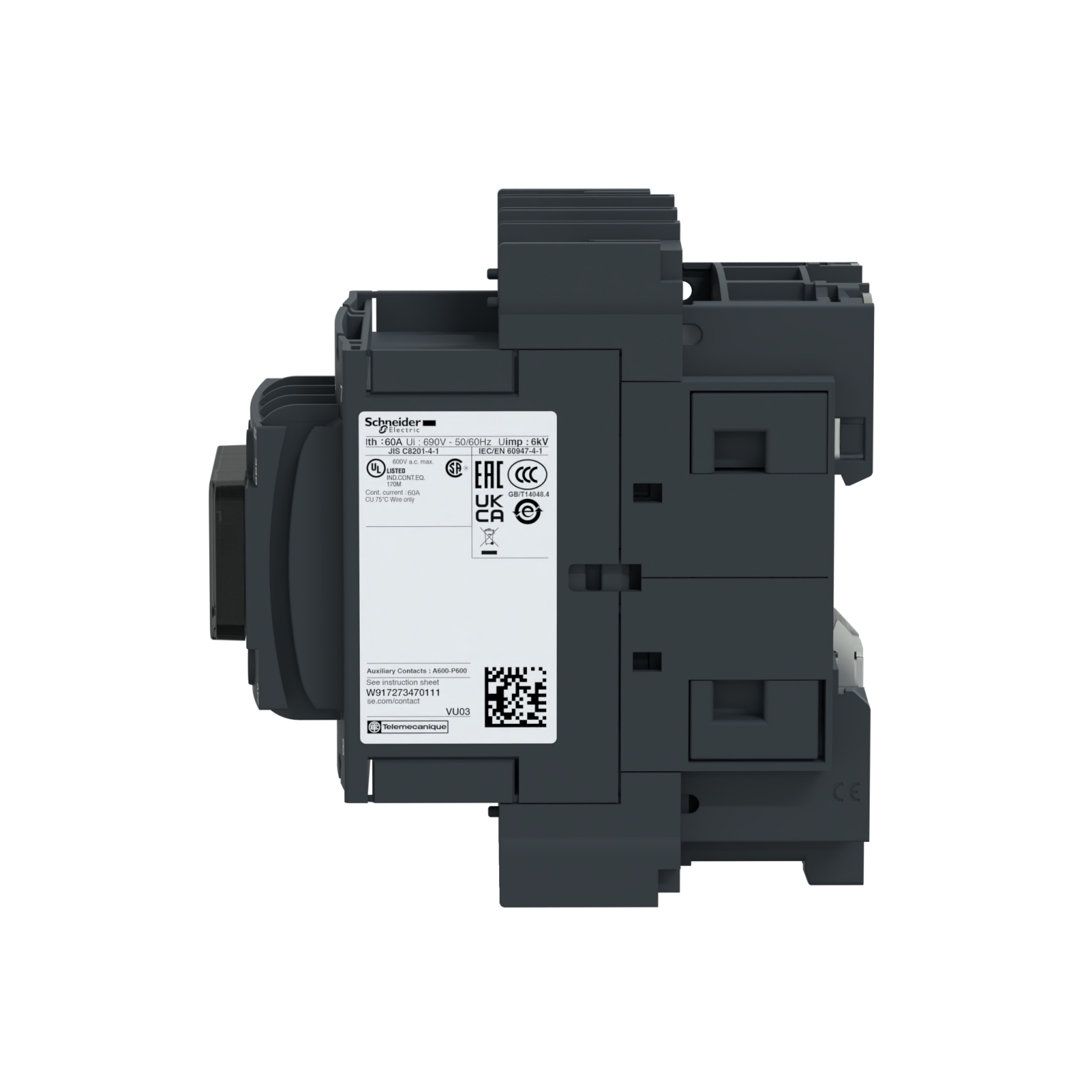| Electrical durability | 0.7 Mcycles 60 A AC-1 at Ue <= 440 V |