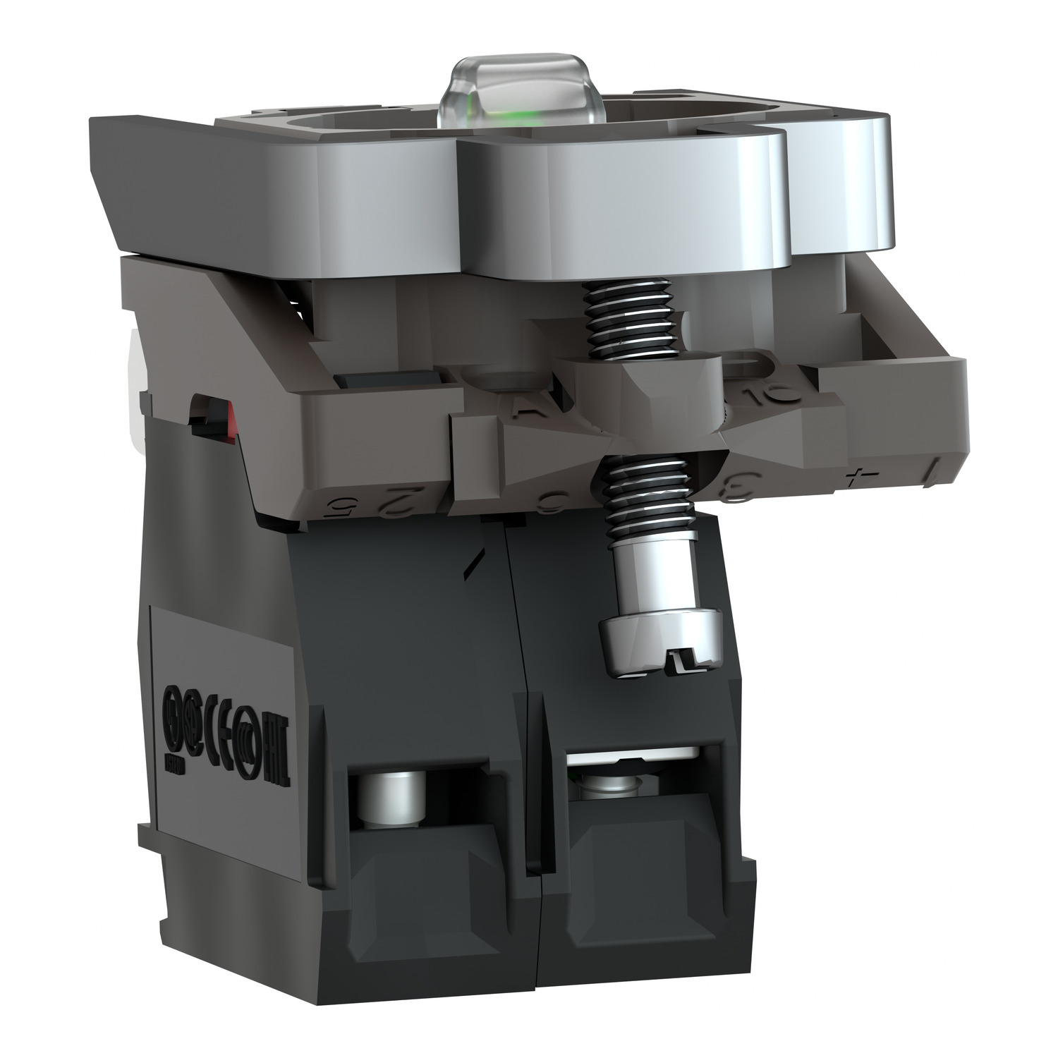 This Harmony XB4, light block with body/fixing collar is red, operates with an integral LED. It has 1 x NC contact and a metal body and is compatible with Harmony XB4 pilot lights. This light block allows fast and easy replacement and configuration of your signaling units. It is easily installed and replaced on compatible illuminated push button or selector switch units via clip together assembly and connected with simple screw-clamp connections. It enables visual distinction of signaling units via illumination by integral LED. It is impact resistant, dust resistant, water resistant and vibration resistant thanks to its IP66. It is designed to fit with a standard 22mm control and signaling units, ensuring compatibility when installing in pre-existing machinery. Its wide range of operating temperatures from -40°C to 55°C allows versatility in usage of product.