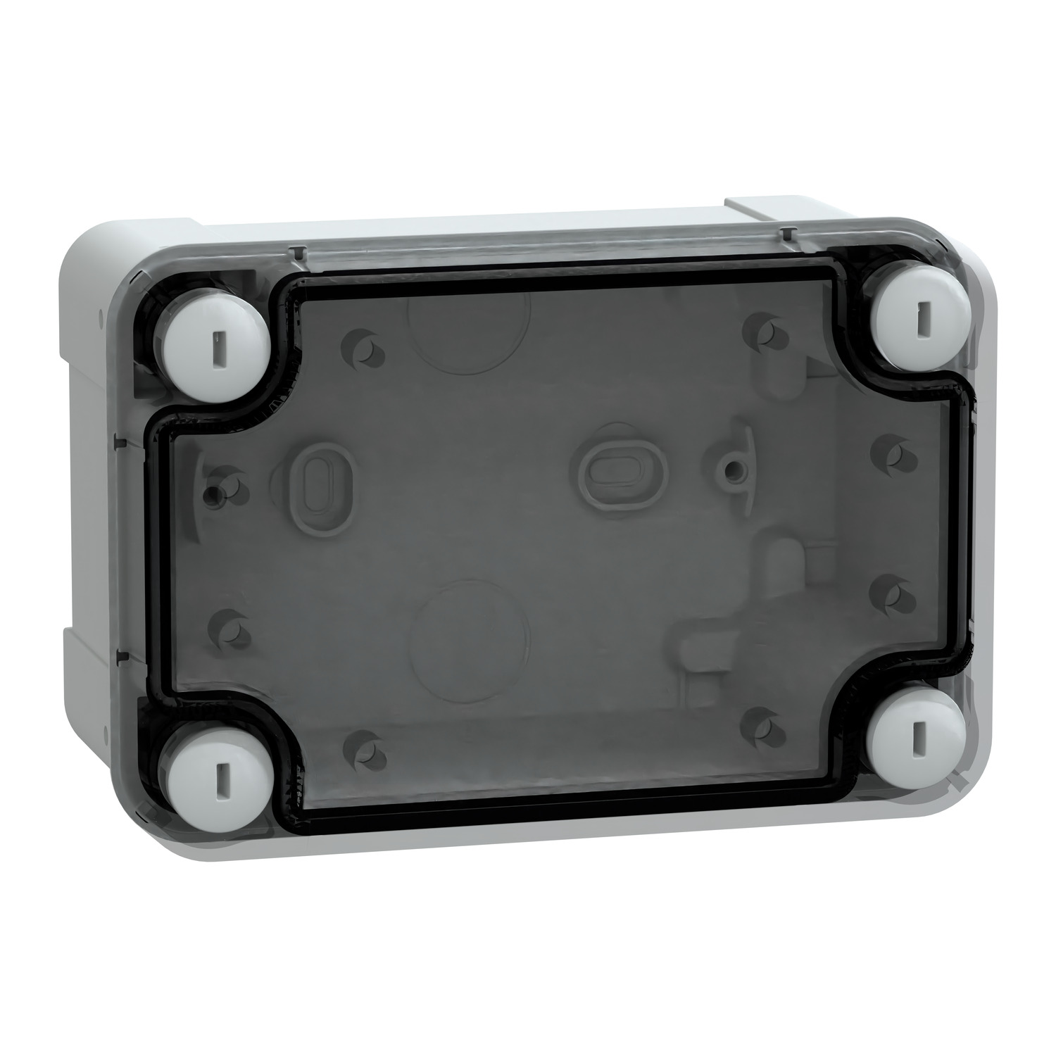 Thalassa TBS industrial ABS box with transparent cover H20. Int is 125 x 80 x 65 mm. Ext is 138 x 93 x 72 mm. Wall mounted enclosure. Low transparent cover. Outside sealed is flat screwdriver captive screw lock. Certifications is DEMKO, SEMKO, TÜV. Fire resistance 650°. ABS (acrylonitrile butadiene-styrene). IP66 (NEMA 4.4X), IK07, Grey RAL 7035, Insulation Class II. Set of 2. Ambient temperature for storage/operation is (-15 to 40°C)/(-25 to 60°C).