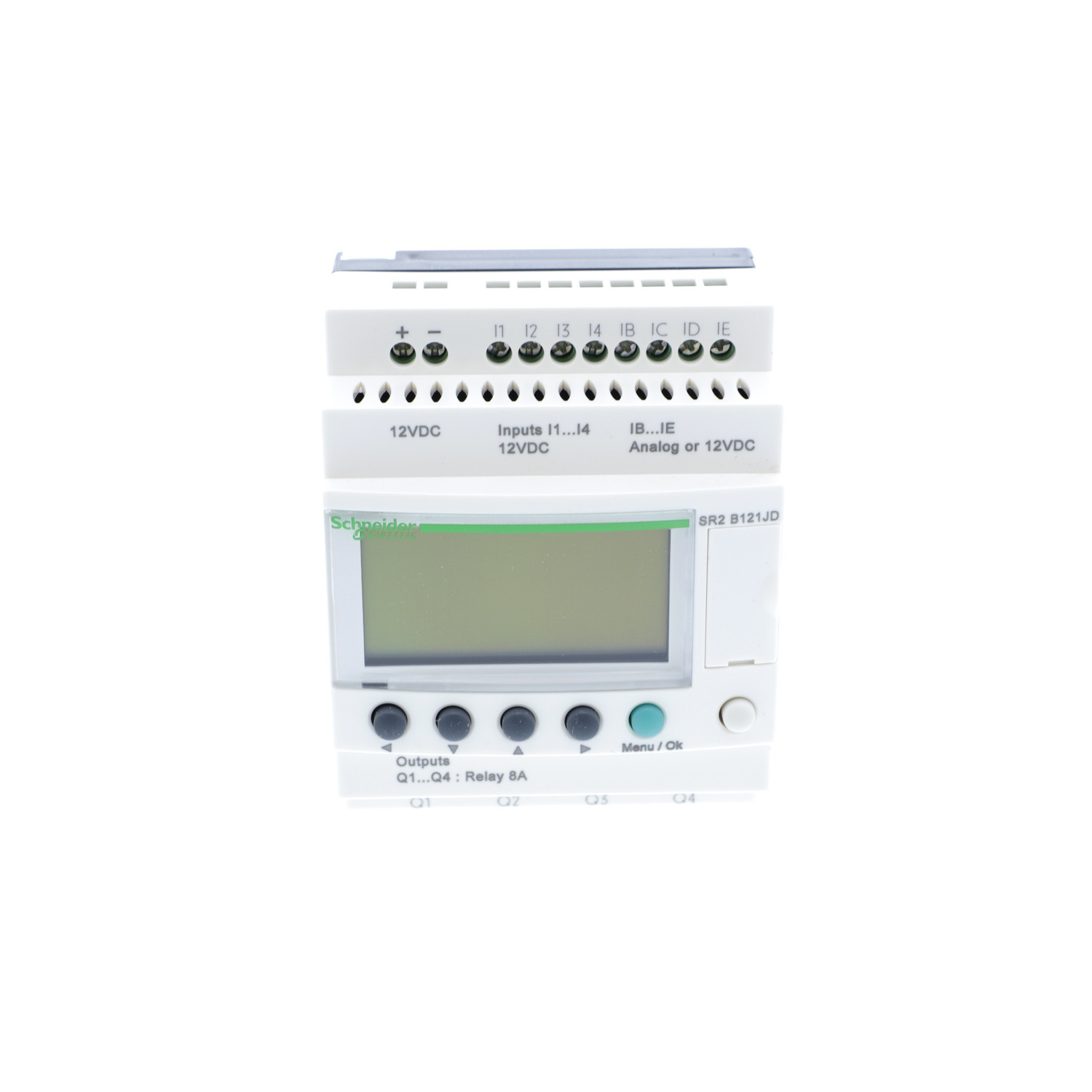 This product is part of the Zelio Logic range, an offer of smart relays for simple automation systems from 10 to 40 I/Os. The compact smart relay provides a real alternative to solutions based on cabled logic or specific cards. It comes with display and clock. Checks program memory on each power up and 0 to 240 with ladder programming number or control scheme lines. Easy to use, Zelio Logic provides a real alternative to solutions based on cabled logic or specific cards It offers 4 relay outputs with normally opened contact and 8 discrete inputs. It is a smart relay with a rated supply voltage of 12V DC, a maximum supply current of 120mA (without extension) and a power consumption of 1.5W without extension. It is an IP20 and IP40 rated product. It weighs 0.25kg. This product meets EN/IEC 61000-4-11, EN/IEC 60068-2-6 Fc, EN/IEC 61000-4-12, EN/IEC 61000-4-2 level 3, EN/IEC 61000-4-5, EN/IEC 61000-4-3, EN/IEC 61000-4-4 level 3, EN/IEC 60068-2-27 Ea and EN/IEC 61000-4-6 level 3 standards. Simple to select, install and program, Zelio Logic is suitable for all your applications. Flexible, it offers you the choice of 2 ranges, compact or modular, extendable and 2 programming languages (FBD or LADDER). Easy to use, Zelio Logic provides a real alternative to solutions based on cabled logic or specific cards.