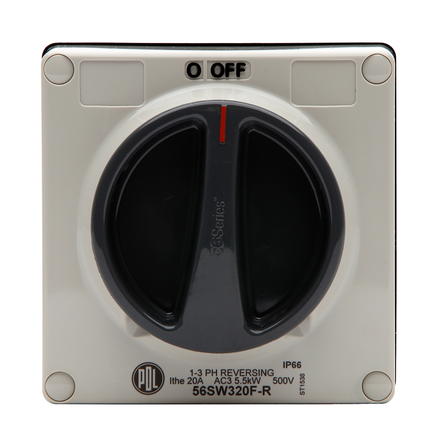 The PDL 56 Series Switch is a high-quality electrical solution designed to fulfill the strict requirements of industrial, commercial, and outdoor settings. A 3-pole configuration ensures balanced power delivery across phases, reducing load stress and improving overall efficiency. The rated current is 20A and the rated operational voltage is 500VAC. Surface-mounted design with flexible cable entry options and generous wiring space. The device comes with a screw terminal that offers a more secure connection for larger wires, reducing the risk of loose wires caused by external factors. Screws are available for installation. The dimensions are (W) 95mm x (H) 95mm x (D) 62mm. The product is grey and has a glossy surface finish. It is made of PC (polycarbonate), which is resistant to wear and tear. It has an IP66 rating for dust and water resistance. PDL 56 Series™ is a range renowned for its rugged reliability and demonstrated performance in industrial environments since the 1980s.