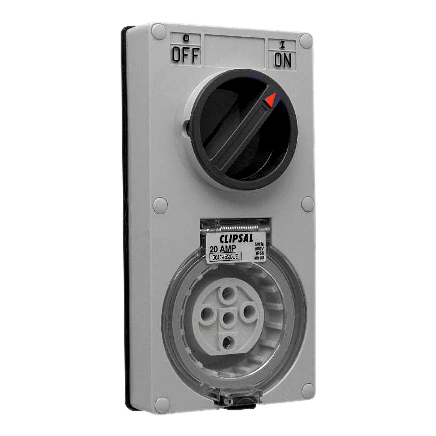 Switched Socket, Clipsal - 56 Series, Vertical IP66 5 PIN 20A Less Enclosure