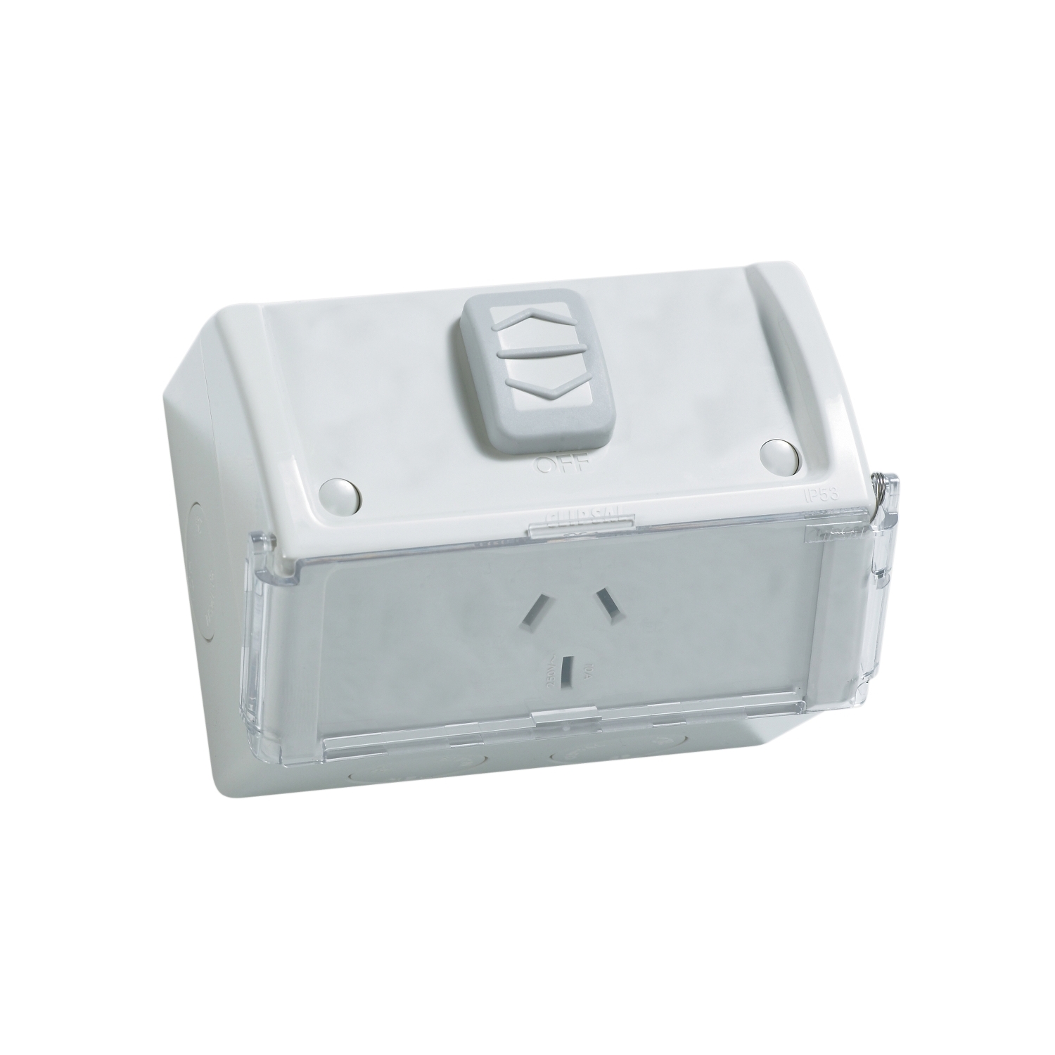 Twin Switch Socket Outlet, Weathershield, 250V, 10A, Weather Proof, Flap, Flush Mount, Single