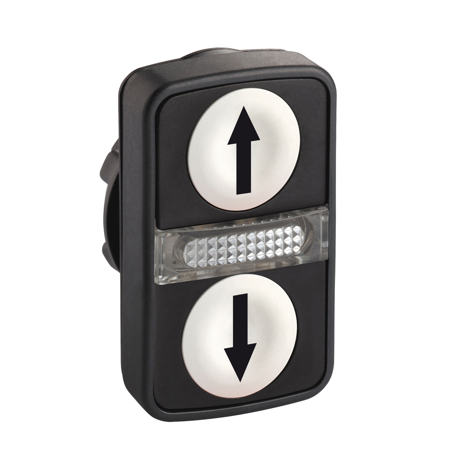 This double head has 2 white buttons and 1 central white pilot light, it provides a versatile interface for controlling your machines. It is easily installed and replaced on compatible complete push button units and contact blocks via snap-fit assembly. It is clearly distinguishable visually at a distance thanks to its pilot light and illuminated head with clear colors. It minimizes errors in machine control. It is impact resistant, dust resistant, water resistant and vibration resistant thanks to its IP66. It makes it ideal for operation in harsh environments.
