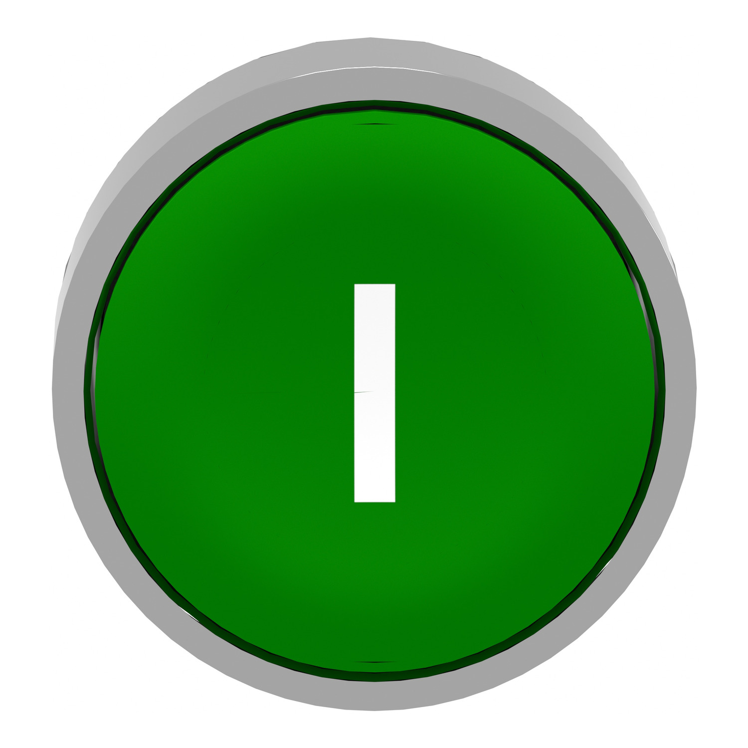 Push button head, Harmony XB4, metal, flush, green, 22mm, spring return, marked I