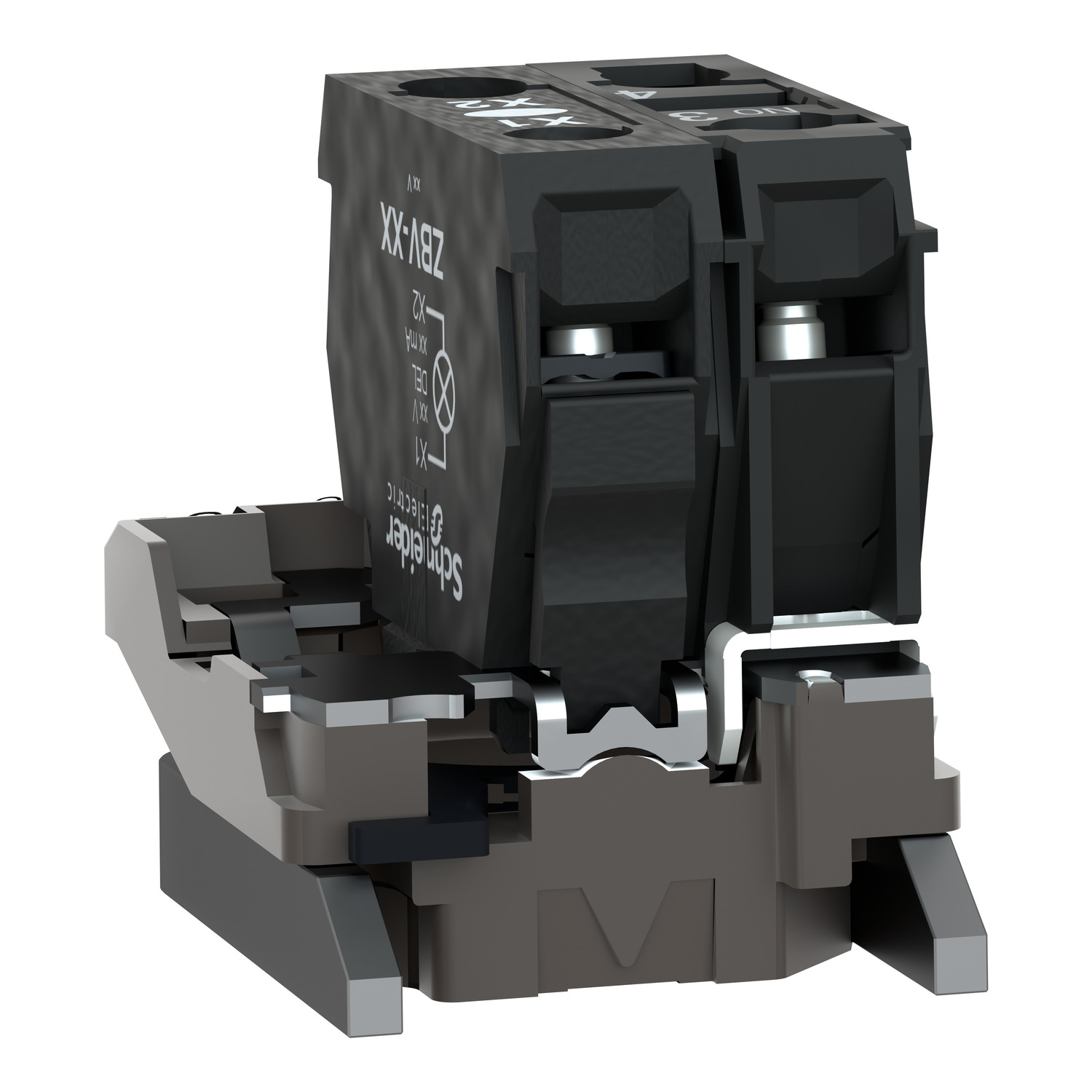 This Harmony XB4, light block with body/fixing collar isoperates with BA9s bulb. It has 1 x NO contact and a metal body and is compatible with Harmony XB4 pilot lights. This light block allows fast and easy replacement and configuration of your signaling units. It is easily installed and replaced on compatible illuminated push button or selector switch units via clip together assembly and connected with simple screw-clamp connections. It enables visual distinction of signaling units via illumination by connected with BA9s bulb. It protects operators from unexpected contact with live circuits thanks to its IP20 protection index. It is designed to fit with a standard 22mm control and signaling units, ensuring compatibility when installing in pre-existing machinery. Its wide range of operating temperatures from -40°C to 55°C allows versatility in usage of product.