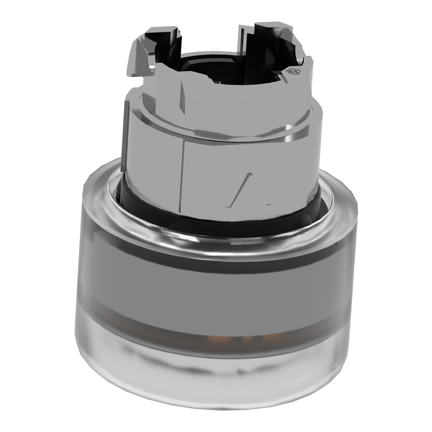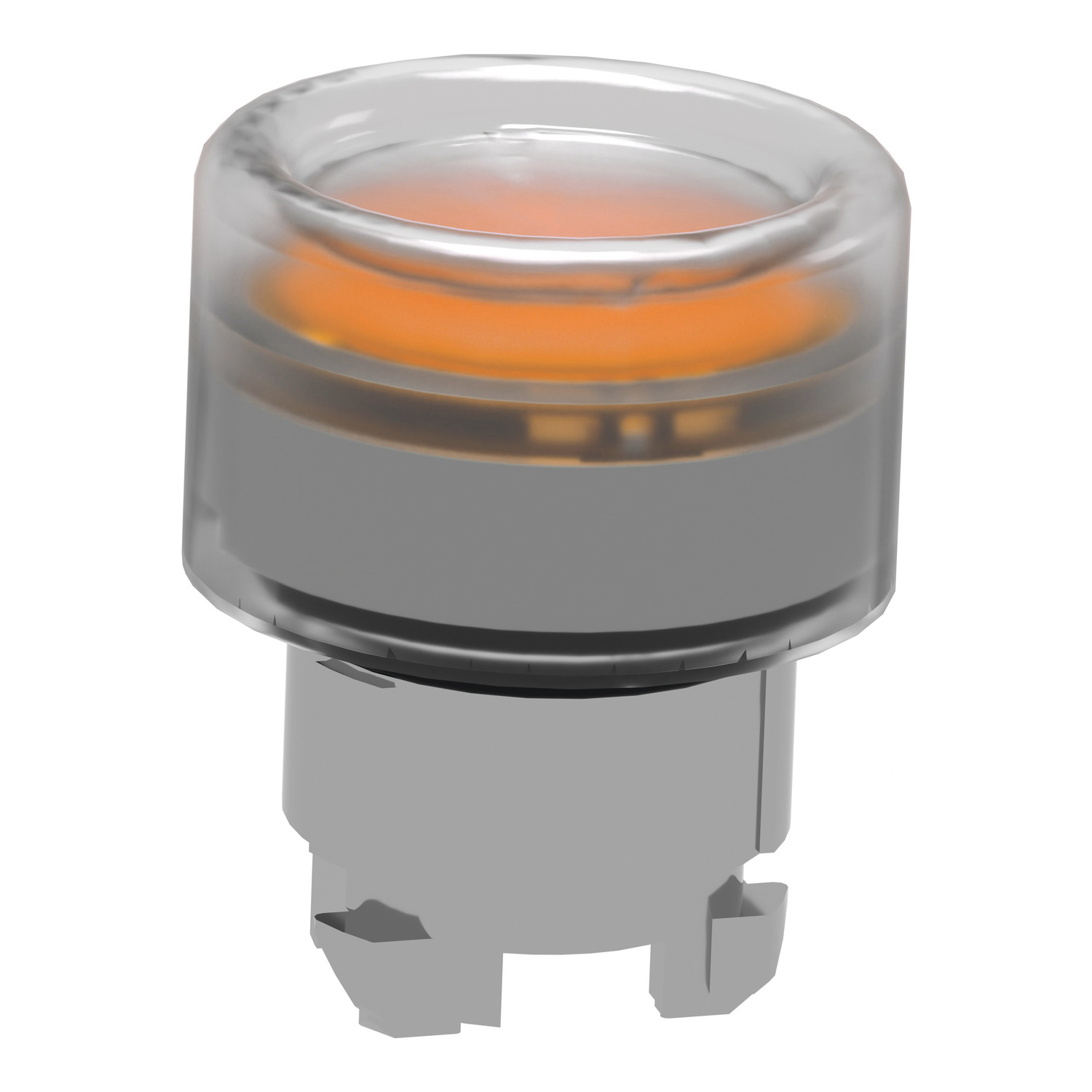 Head for illuminated push button, Harmony XB4, metal, orange flush, 22mm, universal LED, spring return, clear boot