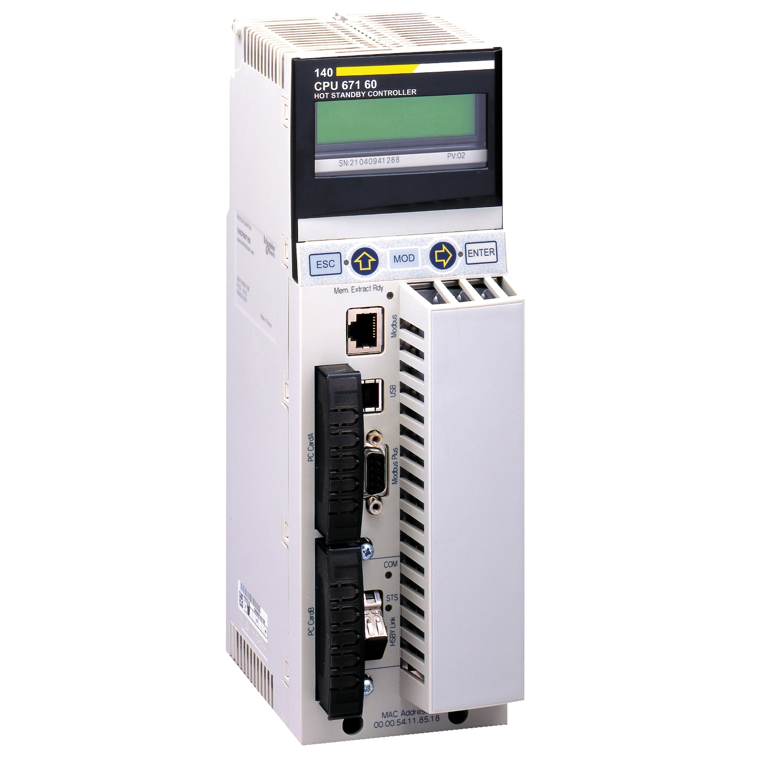 | Integrated connection type | 1 optic fibre with Hot Standby, 1 USB with , 1 Modbus with , 1 Modbus Plus with |