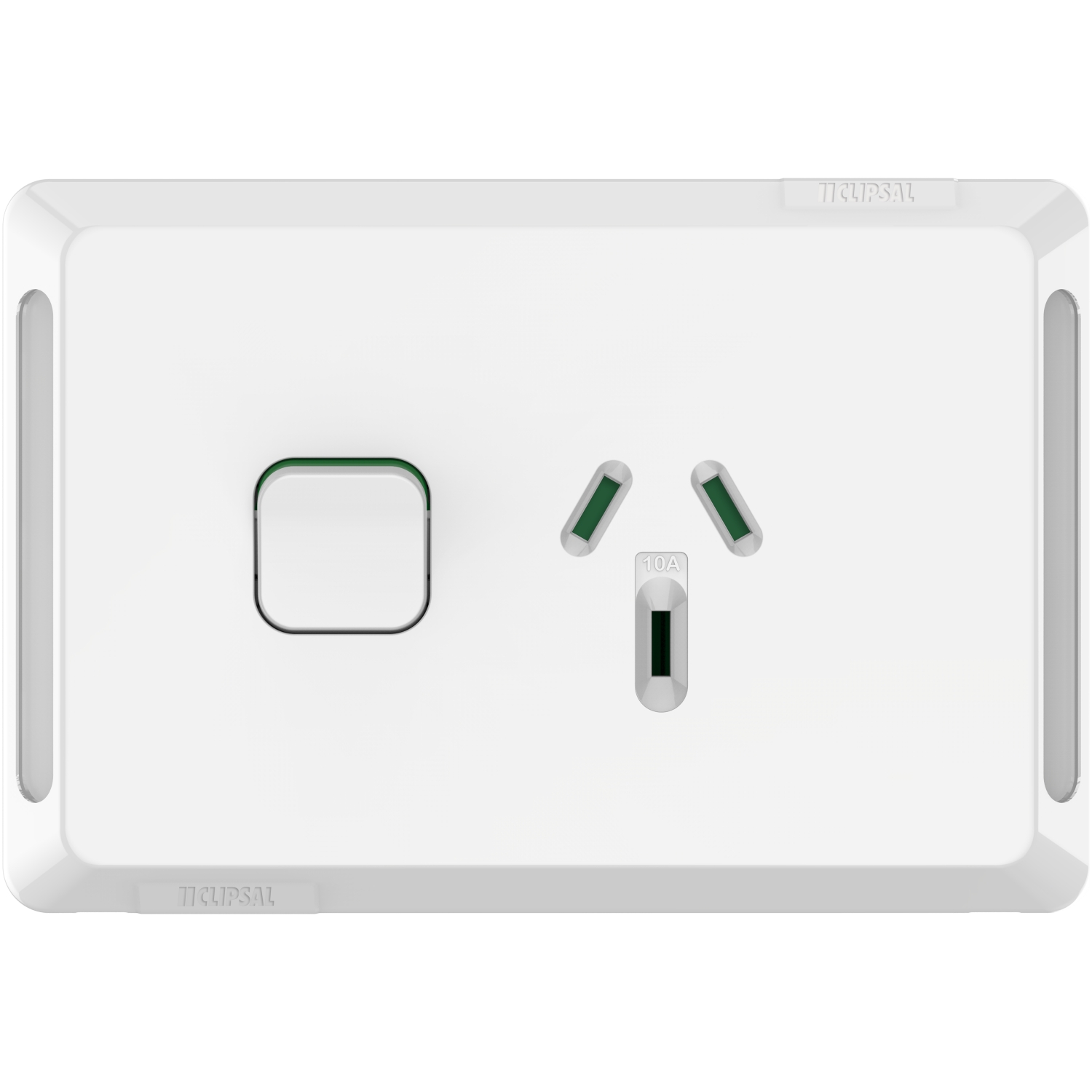 Simple and straight forward, but perfect when you want reliability and robustness, the Clipsal Pro Series Single Horizontal Switched Power Point is a classic. The gloss finish means the switch is easy to keep clean, and the green indicator strip means you can see from a distance when the switch is turned on.