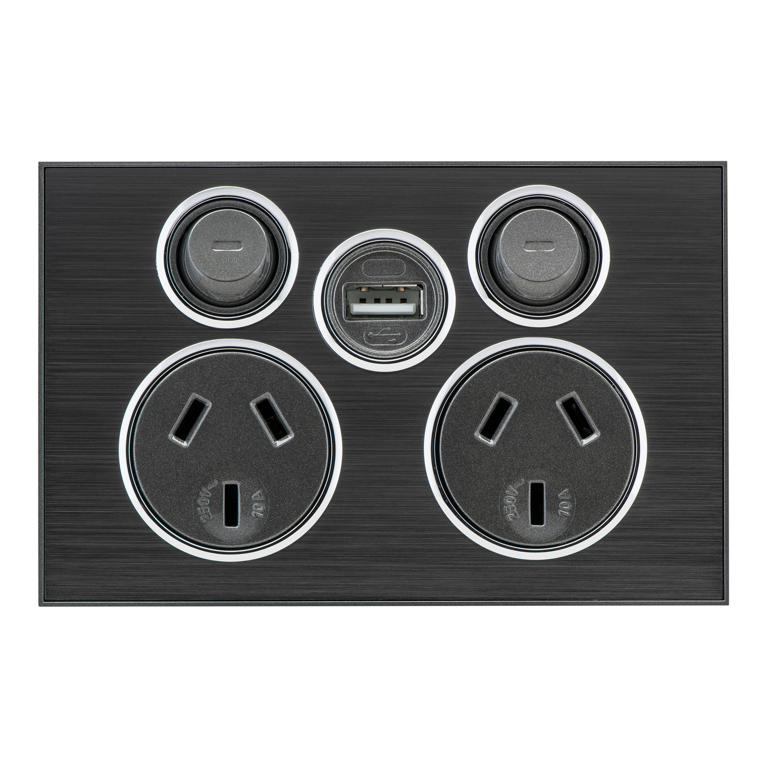 Socket Outlet, Saturn Series, Twin switched, Assembled, Single USB charger, Horizontal, 240 V, 10 A