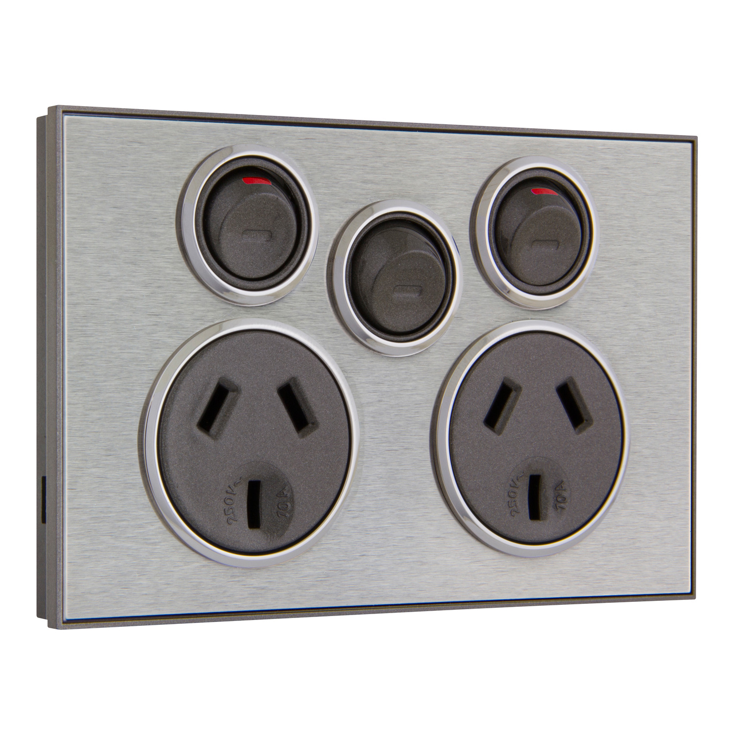 Twin Switched Socket Outlet, Saturn Series, 250V, 10A with Extra Switch