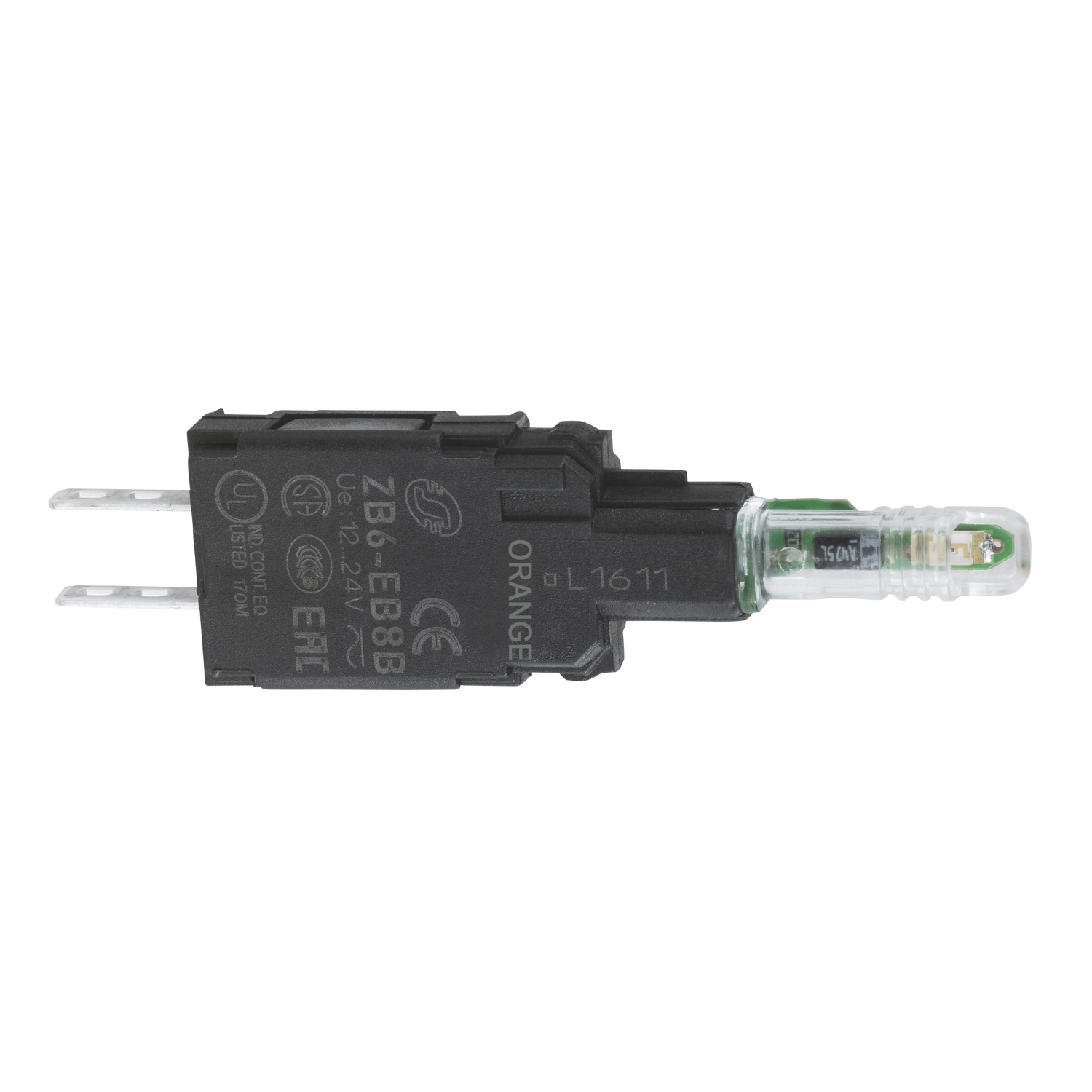 This Harmony ZB6EB8B is an orange light block with body/fixing collar with integral LED 12V to 24V. It is part of the range Harmony XB6 diameter 16mm monolithic plastic push buttons, switches, and pilot lights.