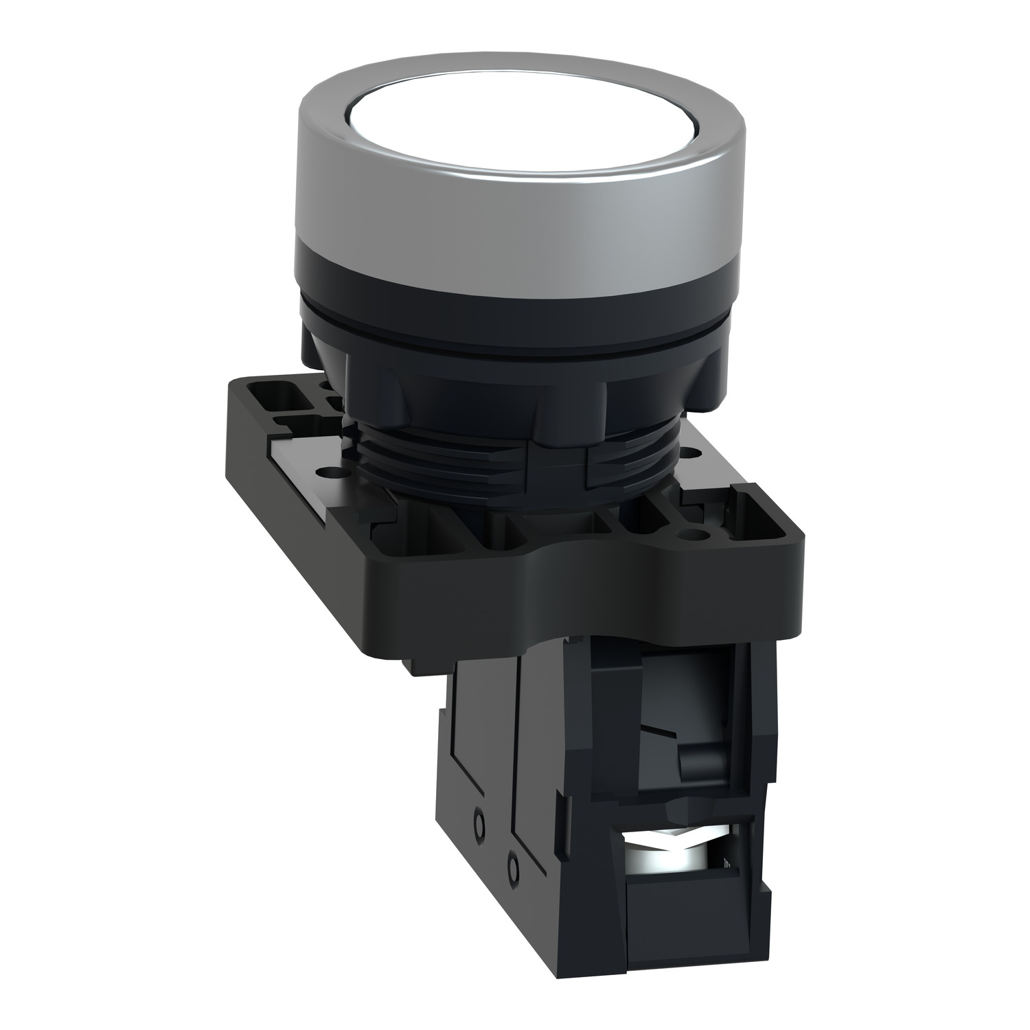 This product is part of the Easy Harmony XA2 range, an offer of Ø 22mm plastic pushbuttons, switches and pilot lights. It is a modular flush white pushbutton. This pushbutton operates with a spring return / impulse mechanism. This flush pushbutton provides an ergonomic interface for controlling machines. It has 1 NO contact with slow-break operation. This is a plastic pushbutton with a metallic-look ring design bezel. It is an IP65 rated product and comes with CE, CCC and EAC certification conforming to GB 14048.1, IEC 60947-1, GB 14048.5 and IEC 60947-5-1 standards . It is easily installed into a standard 22mm diameter panel cut-outs and connected to control circuits with screw-clamp connections. It is clearly distinguishable visually at a distance due to its clear color. It is impact resistant, dust resistant, water resistant and vibration resistant making it suitable for operation in harsh environments.