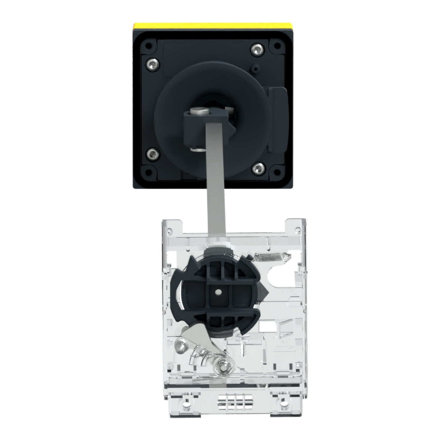 TeSys GV extended rotary handle, for motor circuit breakers GV2L, GV2P mounted inside an enclosure and to be operated externally. For emergency switch usage, it provides a red handle on yellow front plate with indication of 3 positions OFF, ON, TRIP. To be mounted on the door of the enclosure, the handle mechanism ensures an IP54 protection to the mounting. It also includes a mounting adaptor to be screwed on the face of the circuit breaker, and an extension shaft to be be adjusted in length (distance between the door and the back of the circuit breaker must be in range 146-256mm). Padlockable in OFF position with up to 3 padlocks (to be ordered separately). Green Premium compliant (RoHS/REACh).