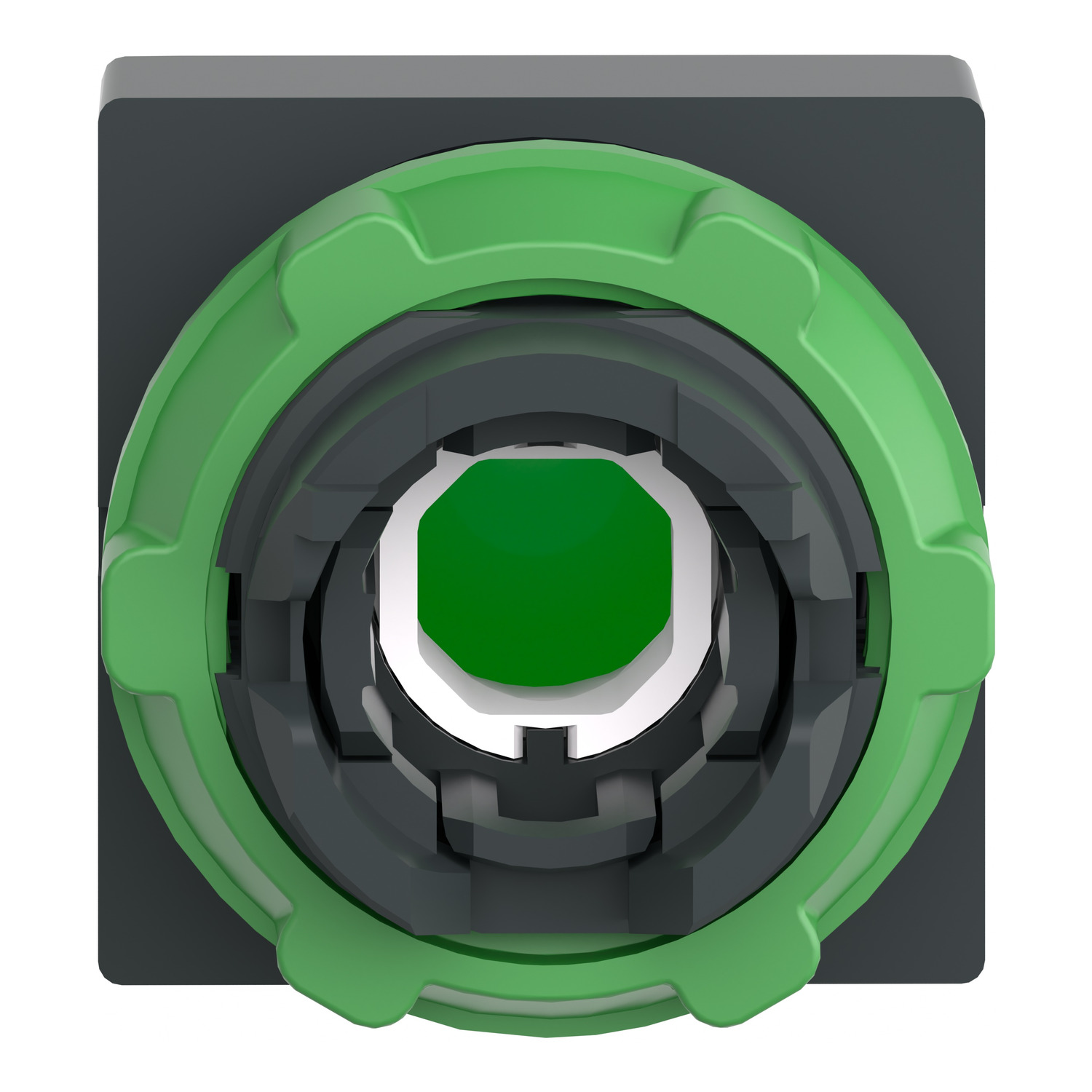 Head for illuminated push button, Harmony XB5, green square projecting, 22mm, universal LED, spring return, unmarked