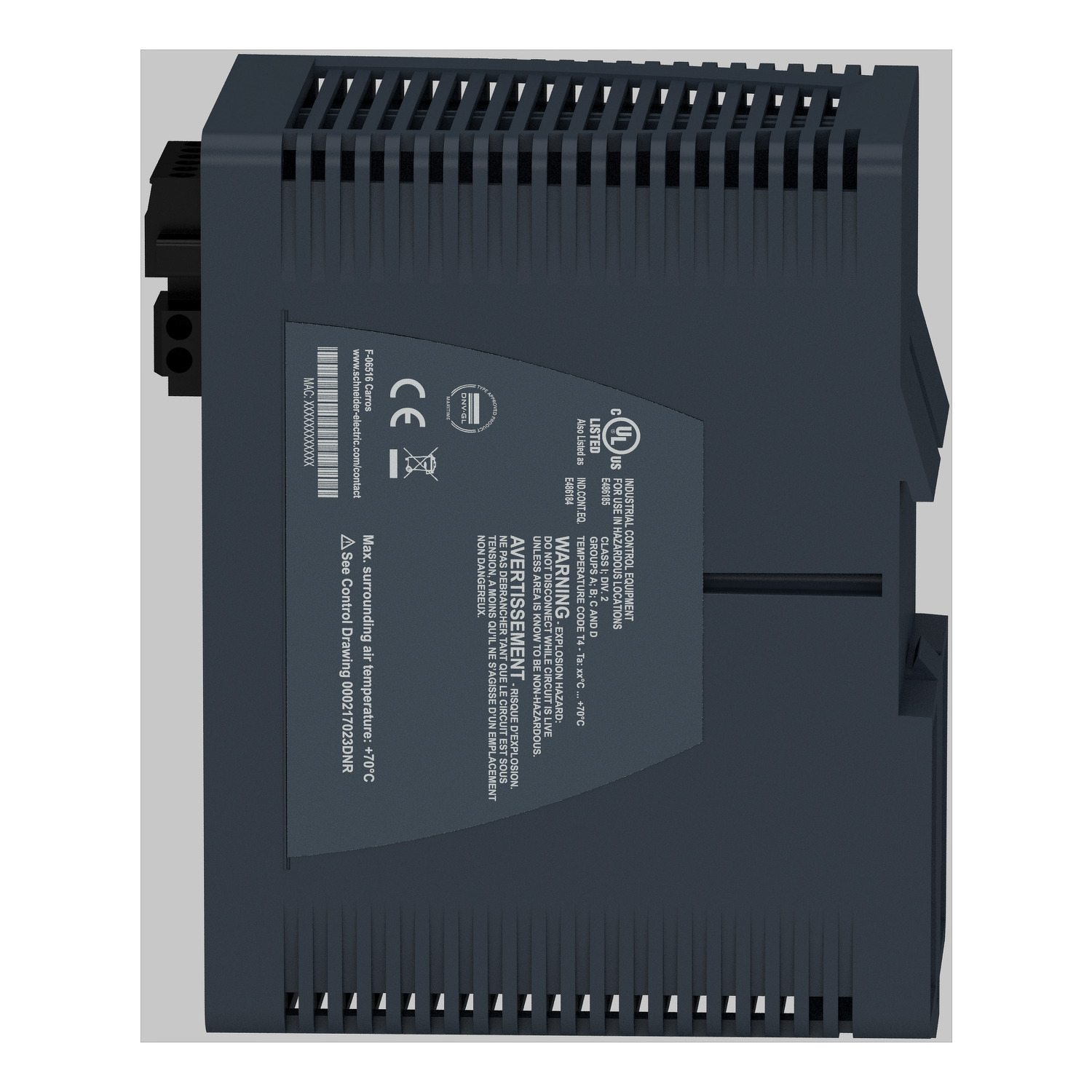 | Mounting support | 35 mm symmetrical DIN rail |