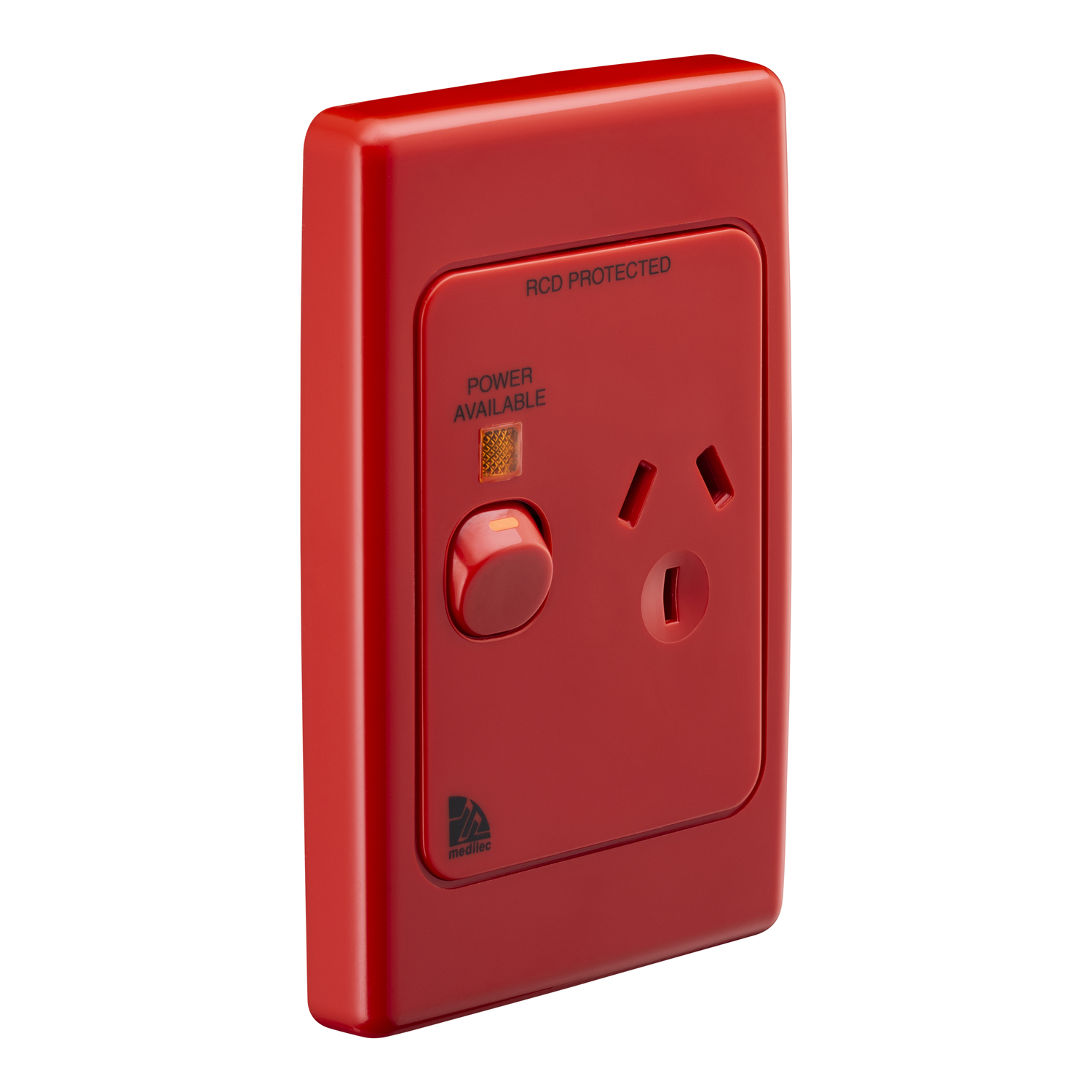 Single Switch Socket Outlet, Medilec, 250V, 10A, Vertical, Indicator