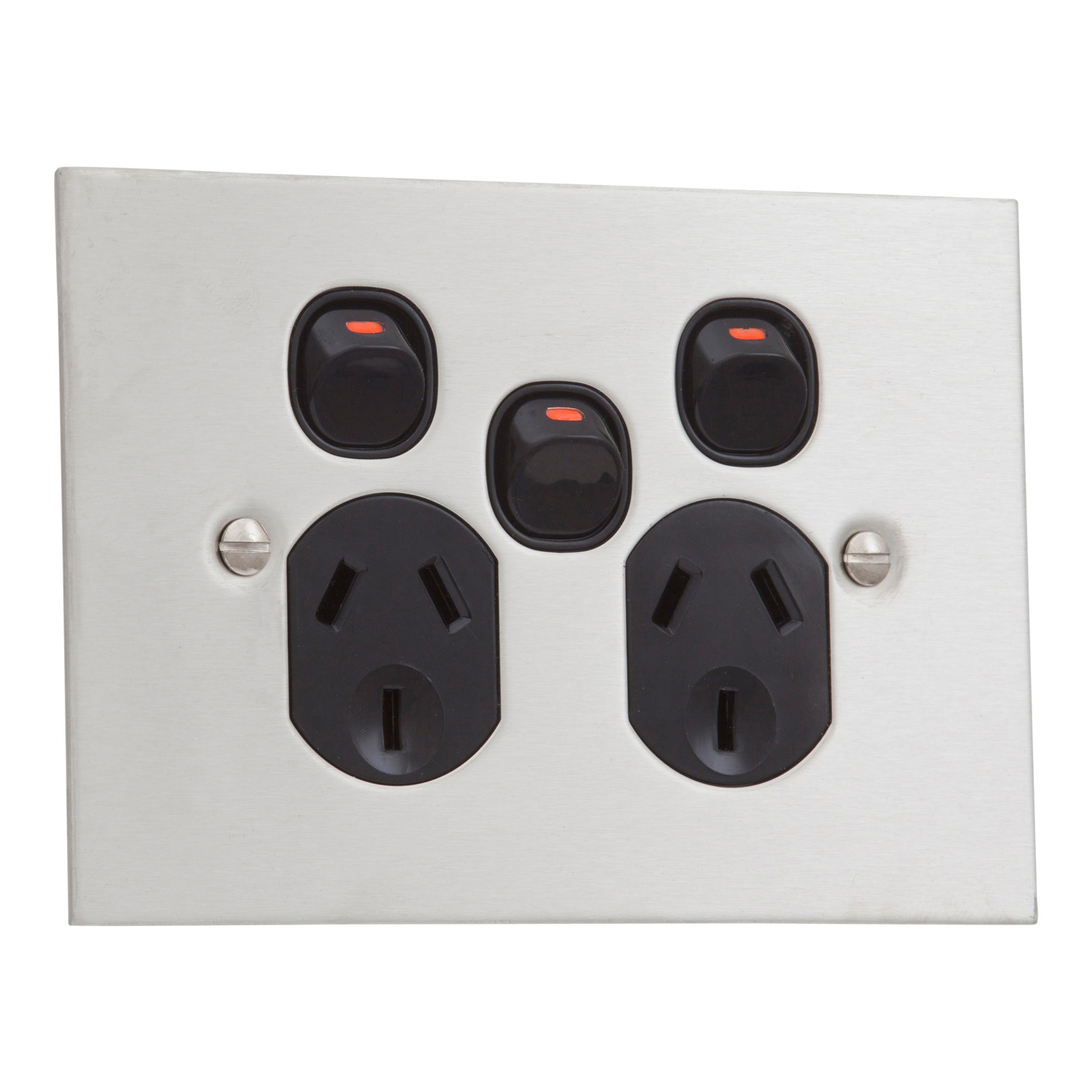 Twin Switch Socket Outlet, Metal Plate Series, 250V, 10A, BSL Style, Removable Extra Switch