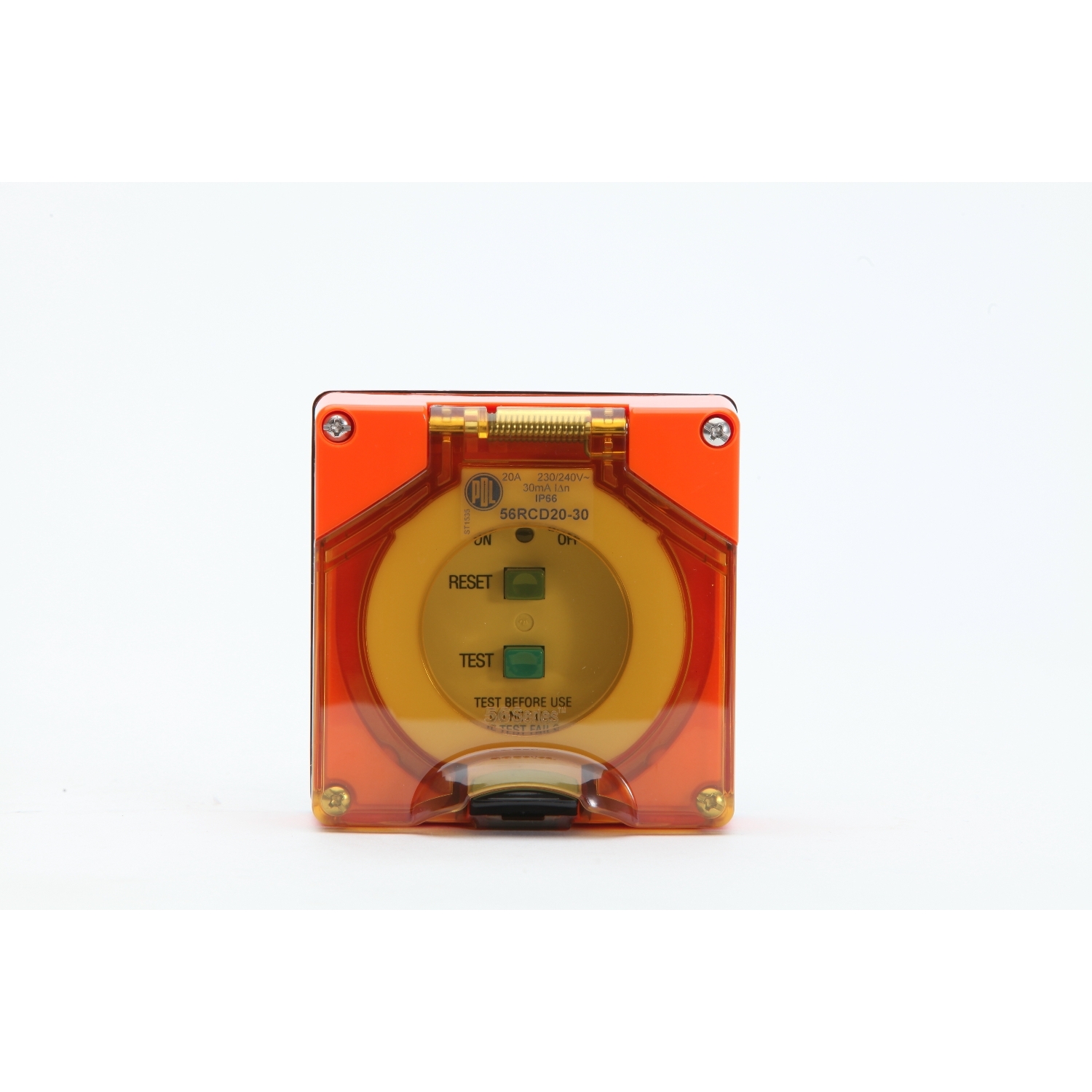 The 56 Series Residual Current Device (RCD) is built for maximum electrical safety in harsh industrial and outdoor environments. Rated 20A, 240V with 30mA trip current for dependable earth leakage protection and safety compliance. Its 1-gang design offers a compact yet robust solution for integration into control panels and distribution boards. The resistant orange finish enhances visibility for safety-critical areas while delivering durability and UV resistance for long-term performance. Designed for quick installation, this RCD helps minimize downtime and streamline maintenance. Ideal for tough environments, combining safety, reliability, and rugged design.