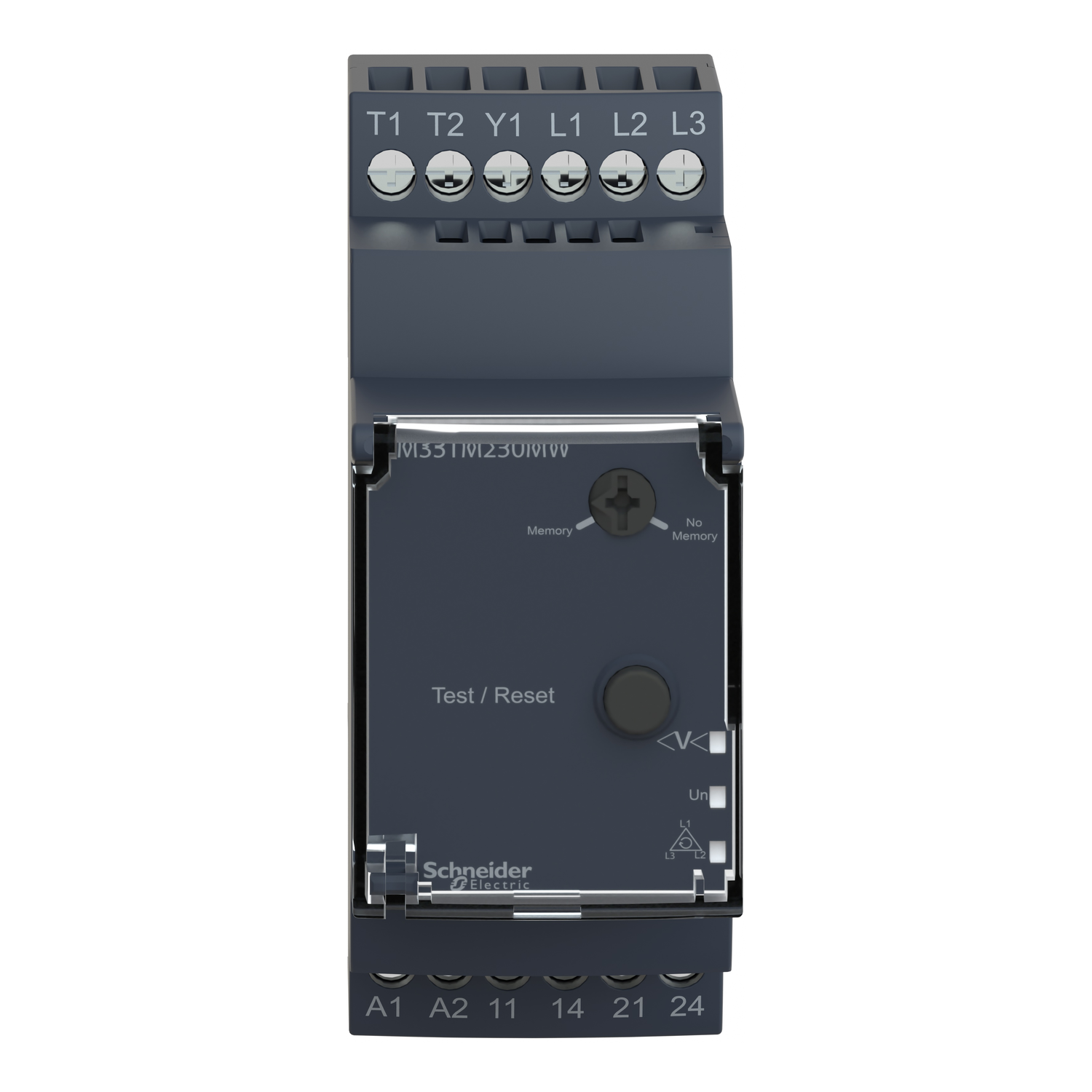 | Relay monitored parameters | selection (with or without memory), motor temperature via PTC probe, test/reset button, phase sequence, phase failure detection |