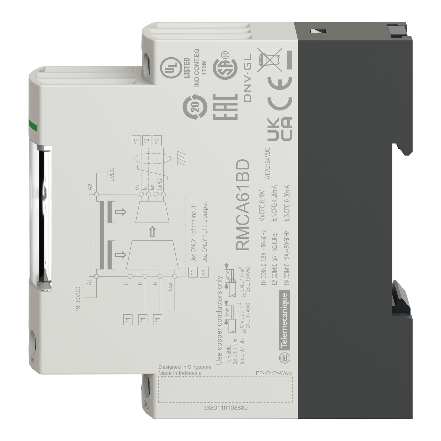 | IP degree of protection | IP50 (housing), IP20 (terminal block) |