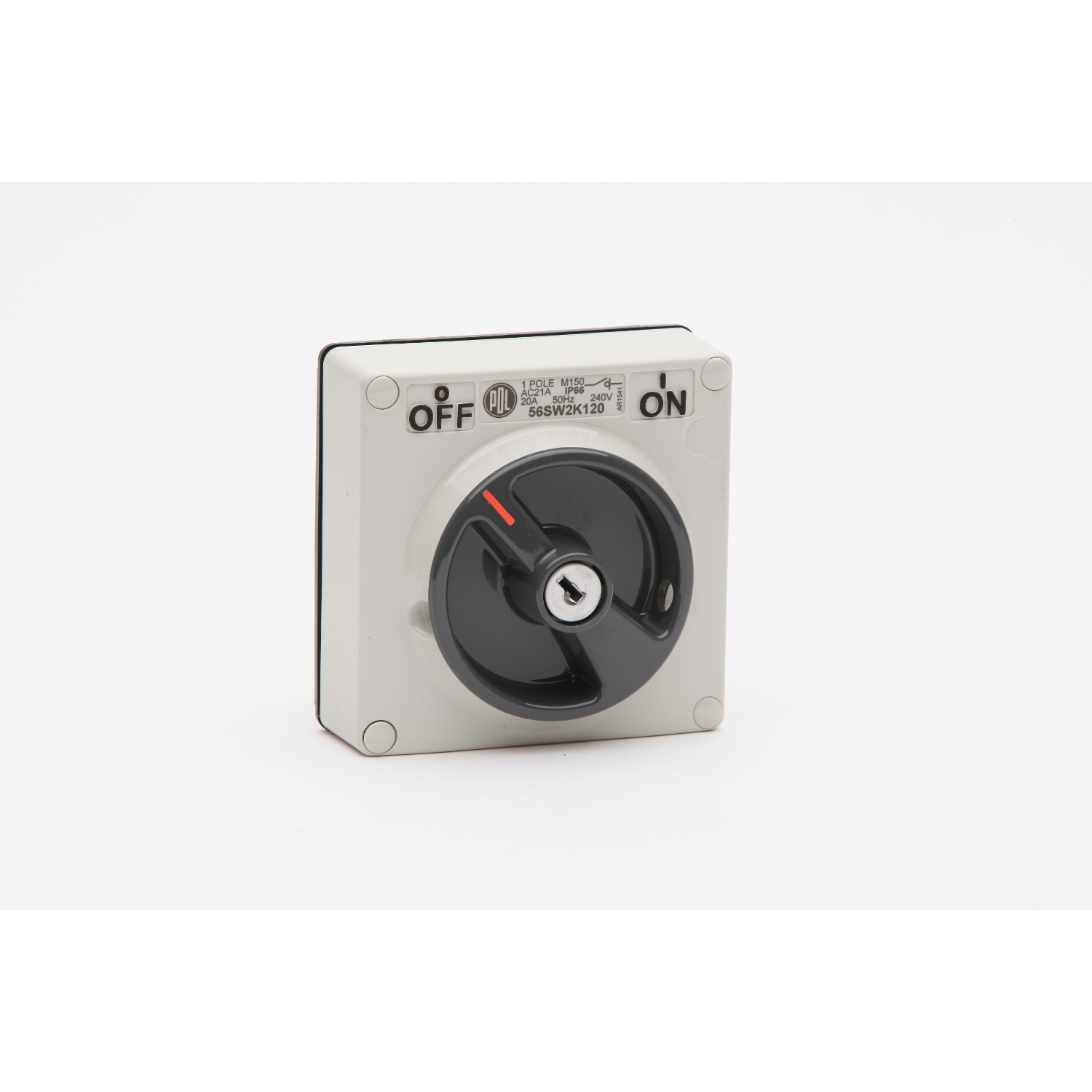 Switch, 20A, 240V, 2-Way, 1-Pole, Keylock, Grey