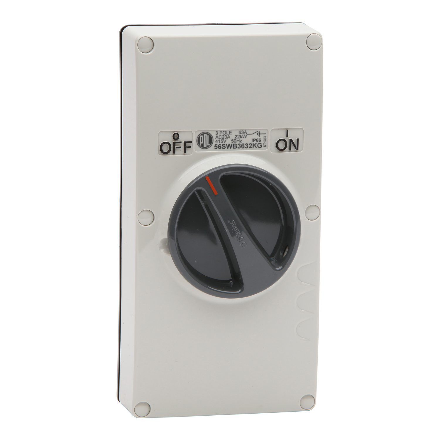 Switch - Base Mount, 63A, 415V, 3-Pole, 2-Gang, Grey