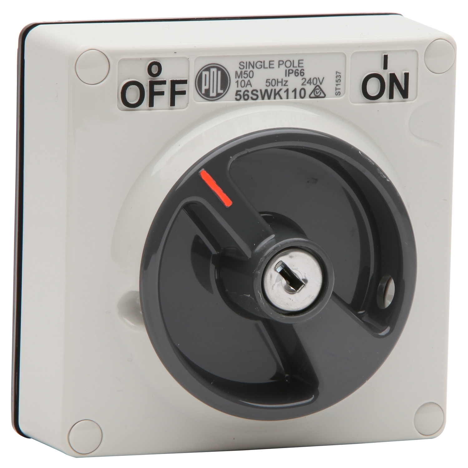 Switch - Keylock, 10A, 240V, 1-Pole, Grey