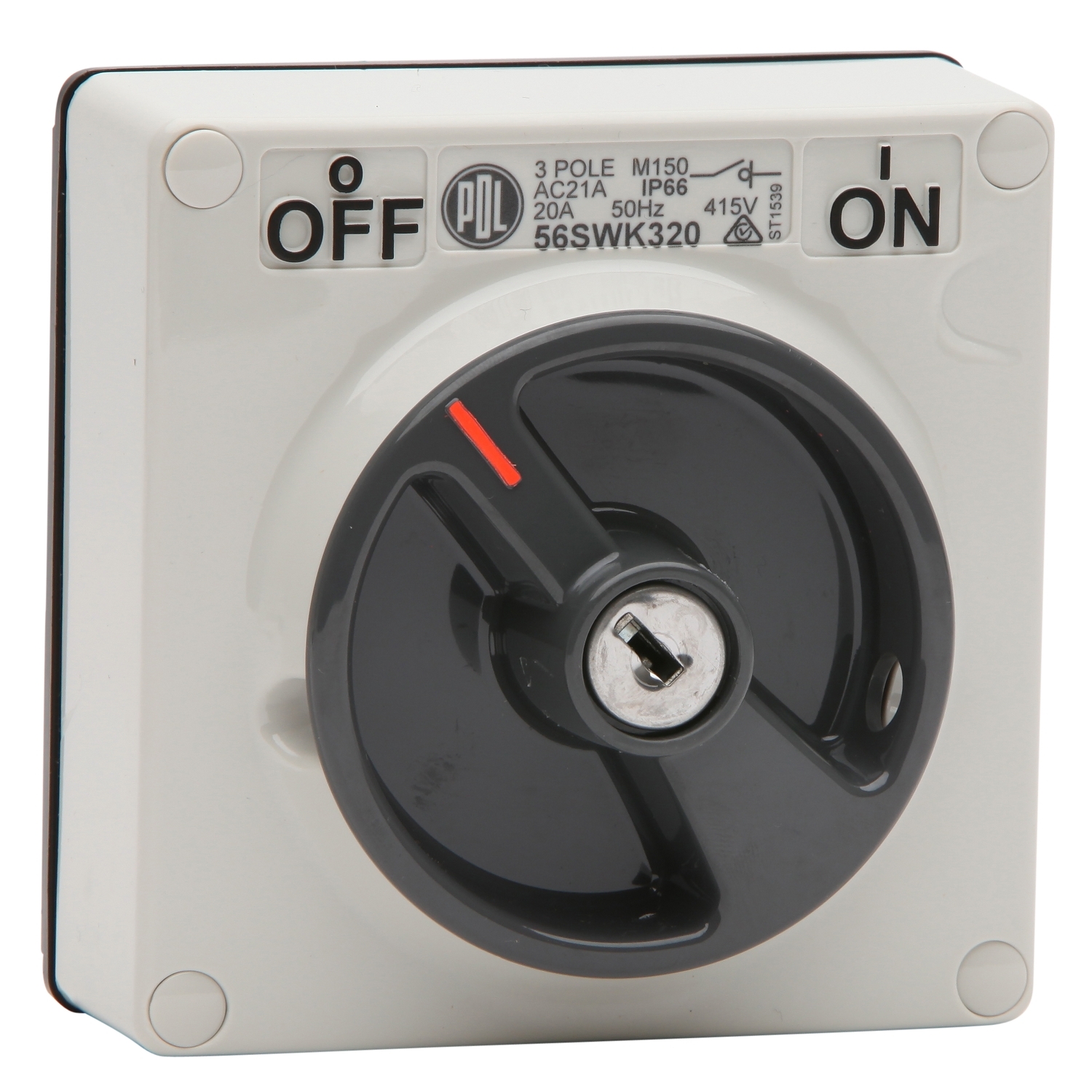 Switch - Keylock, 20A, 415V, 3-Pole, Grey