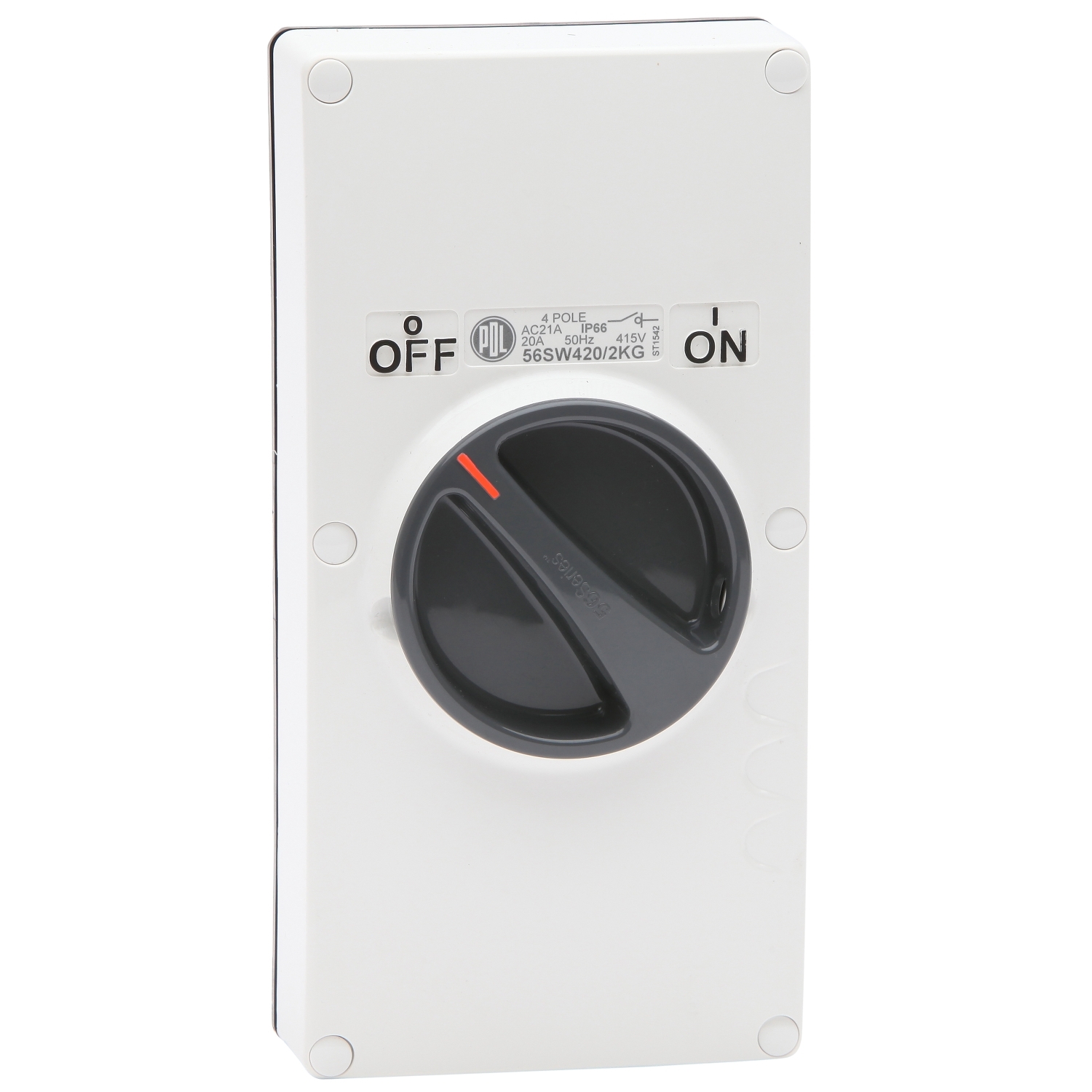 Switch - KG Series, 20A, 500V, 4-Pole, 2-Gang, Resistant White