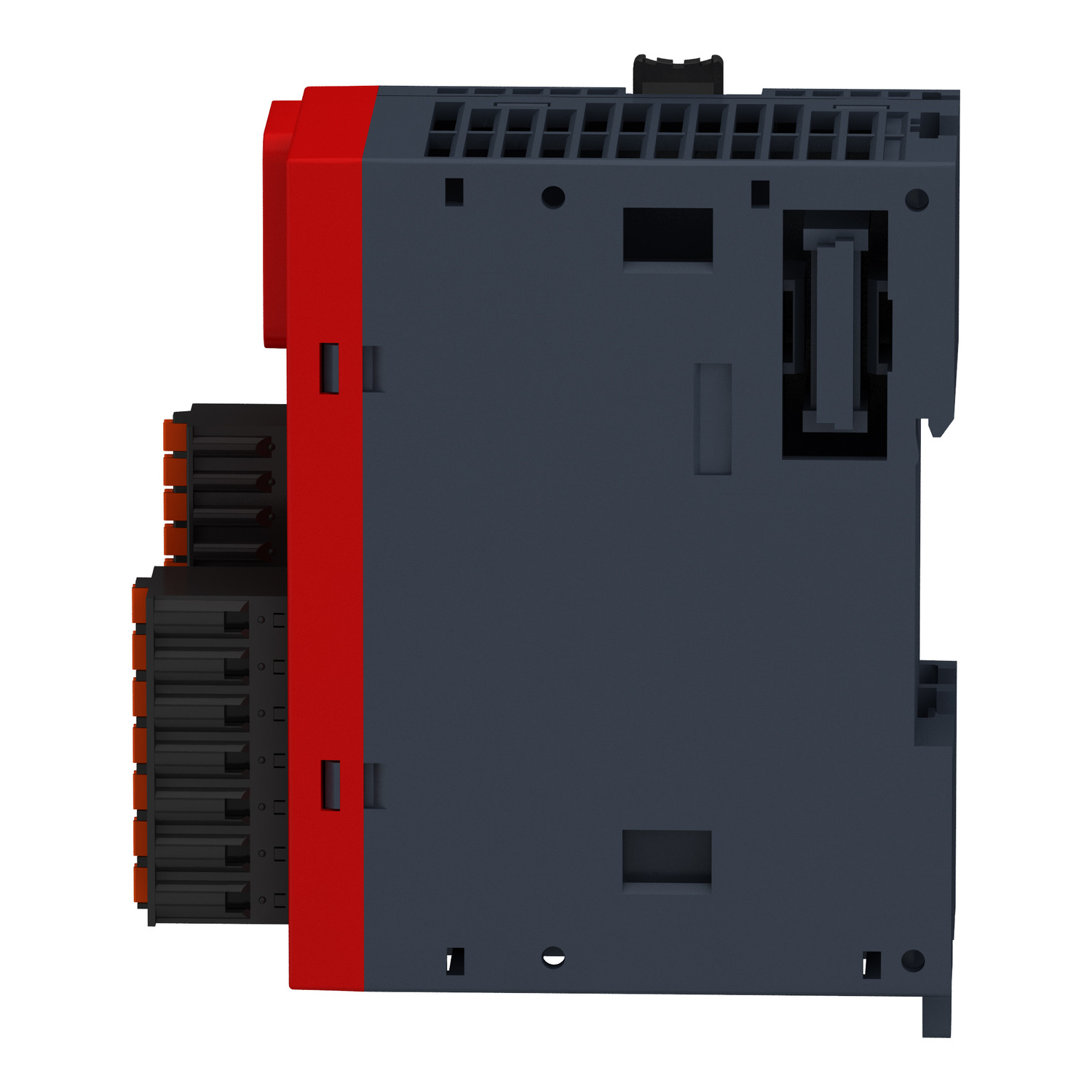 This TM3 safety expansion module monitors emergency shutdown pushbuttons and limit switches. It meets the requirements of PL e/Category 4 conforming to EN/ISO 13849-1 and SILCL3 conforming to EN/IEC 62061. It has a module locking latch, 2 TM3 bus connectors designed to provide continuity of the link between connected modules, a symmetrical rail locking clip, display block for the module channels and diagnostics. It completes your Modicon M221, M241 or M251 PLC configuration with a dedicated safety I/O, without the need to use a complete safety controller. It has removable terminals for easier and better control wires tightening, thus improving installation reliability. It has spring terminals for fast and reliable wiring of safety circuits.