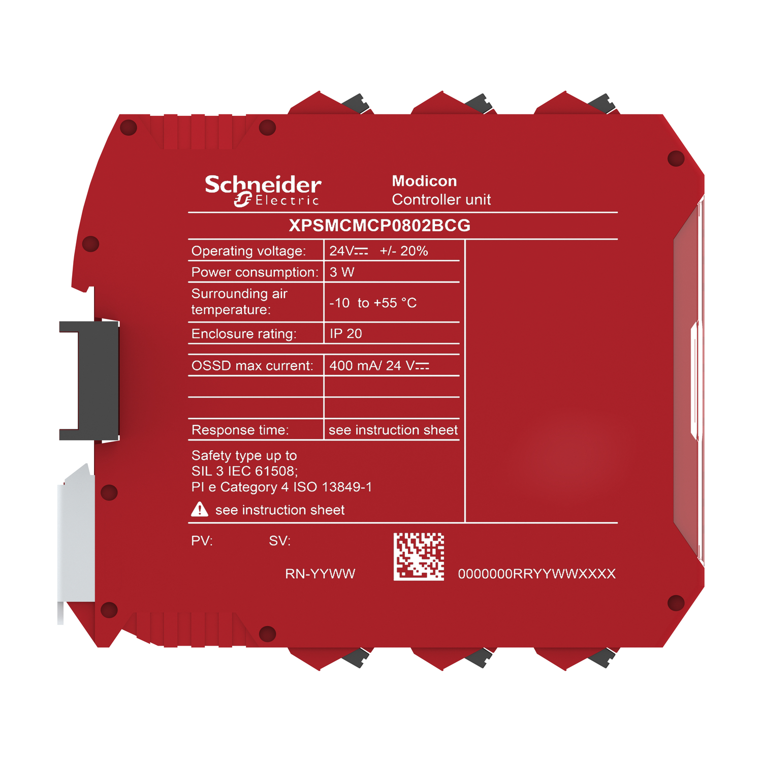 | Safety level | SILCL 3 conforming to IEC 62061, type 4 conforming to IEC 61496-1, can reach PL = e conforming to ISO 13849-1, can reach category 4 conforming to ISO 13849-1 |