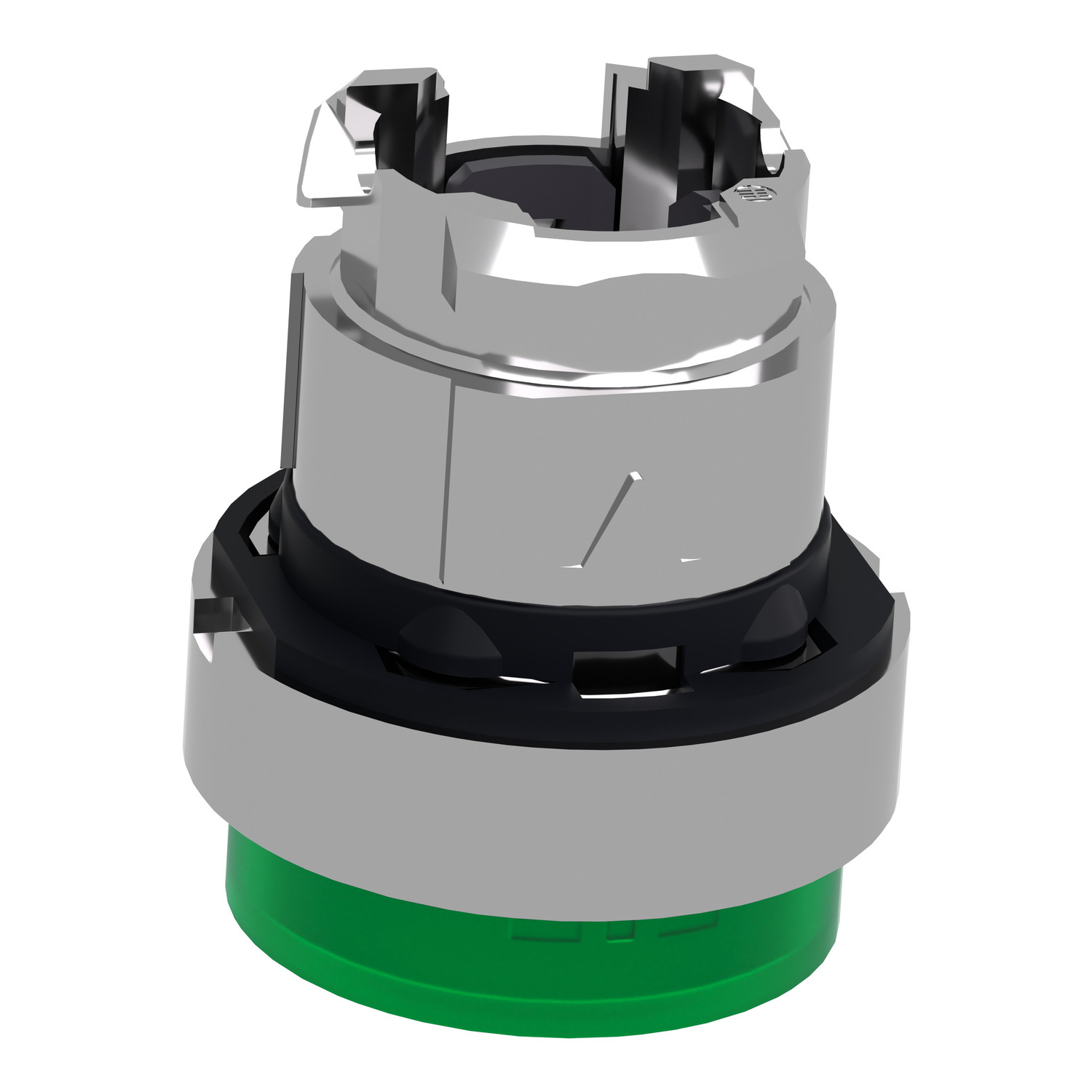 Head for illuminated push button, Harmony XB4, metal, green projecting, 22mm, universal LED, spring return, plain lens