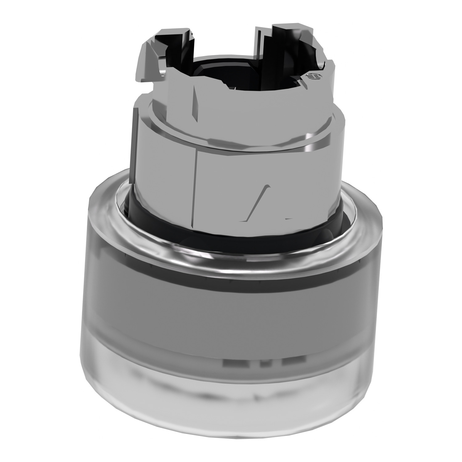 Head for illuminated push button, Harmony XB4, metal, white flush, 22mm, universal LED, spring return, clear boot