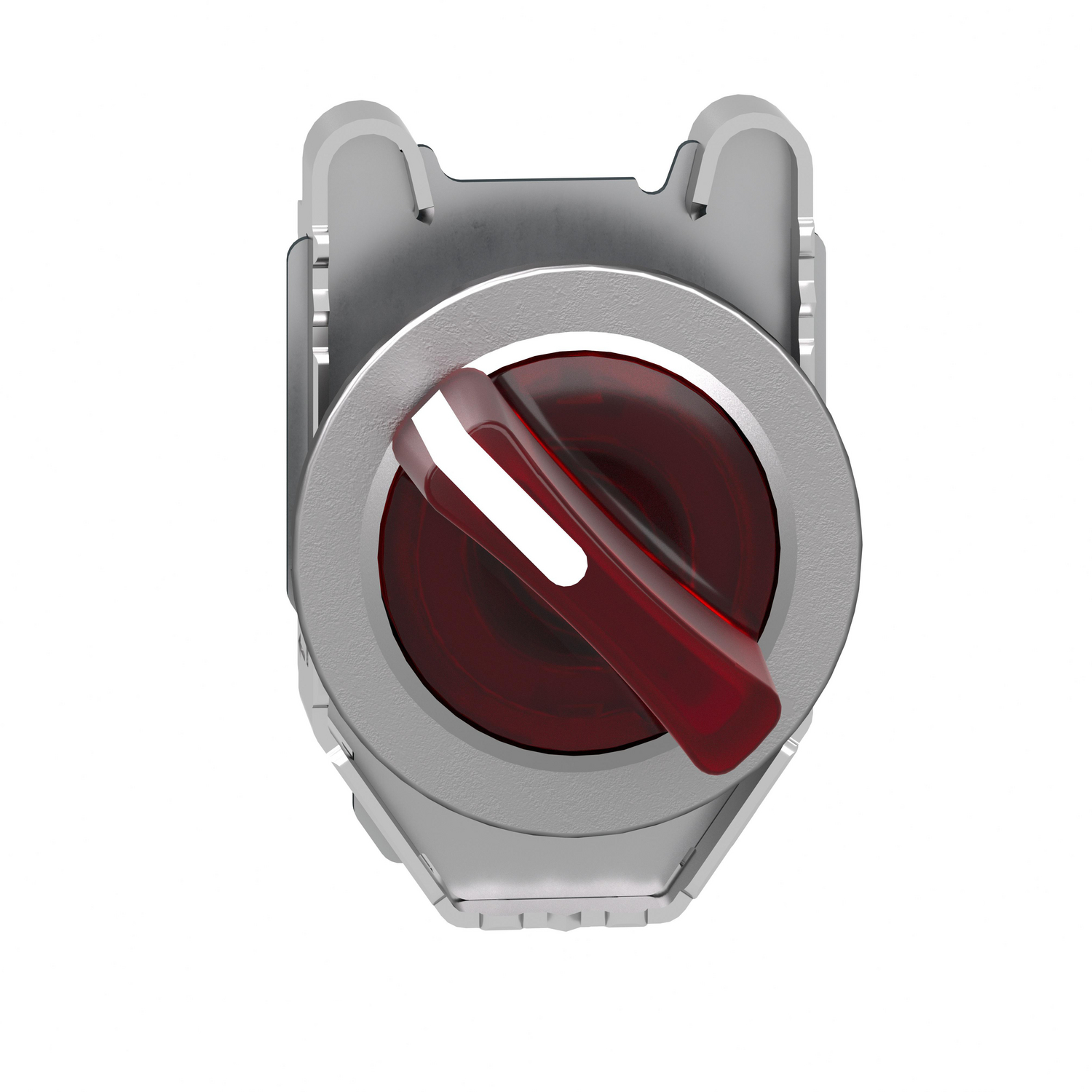 Head for illuminated selector switch, Harmony XB4, metal, red handle, 30mm, universal LED, 2 positions, stay put